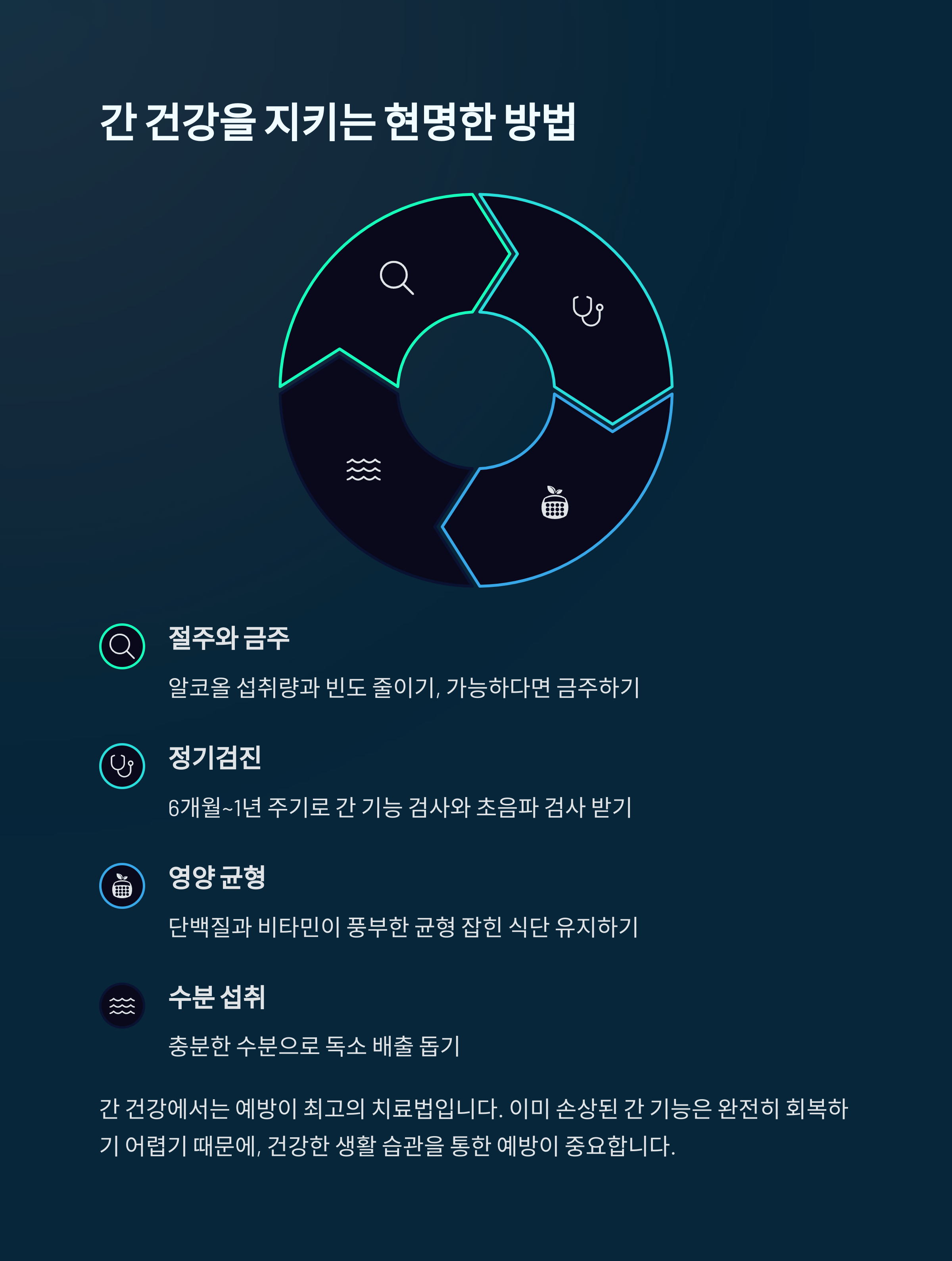 셋째, 정기적인 간 기능 검사를 통해 조기 발견을 목표로 해야 합니다.