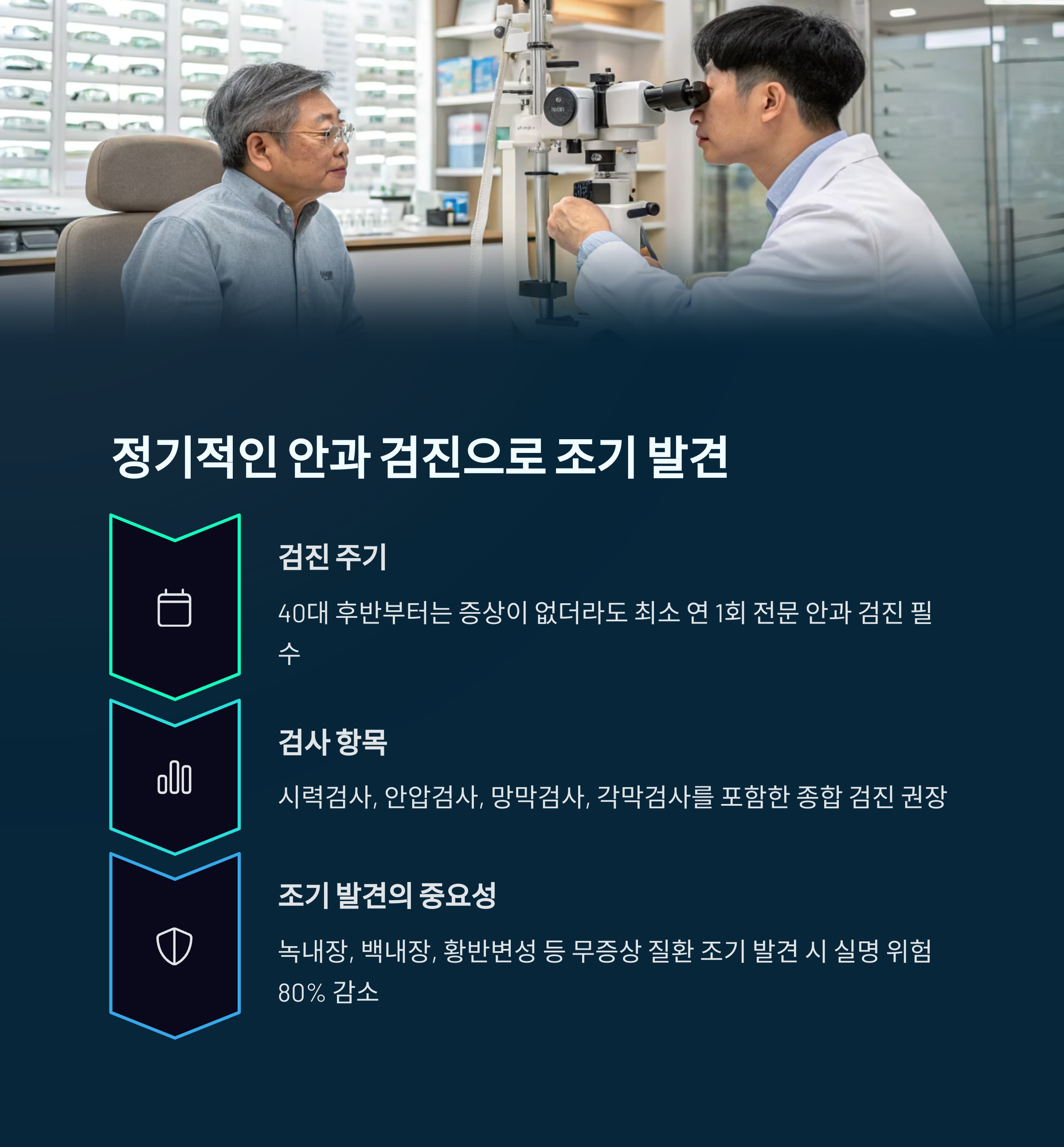 "중년부터는 1년에 한 번 안과 정기 검진을 받는 것"이 필수입니다.