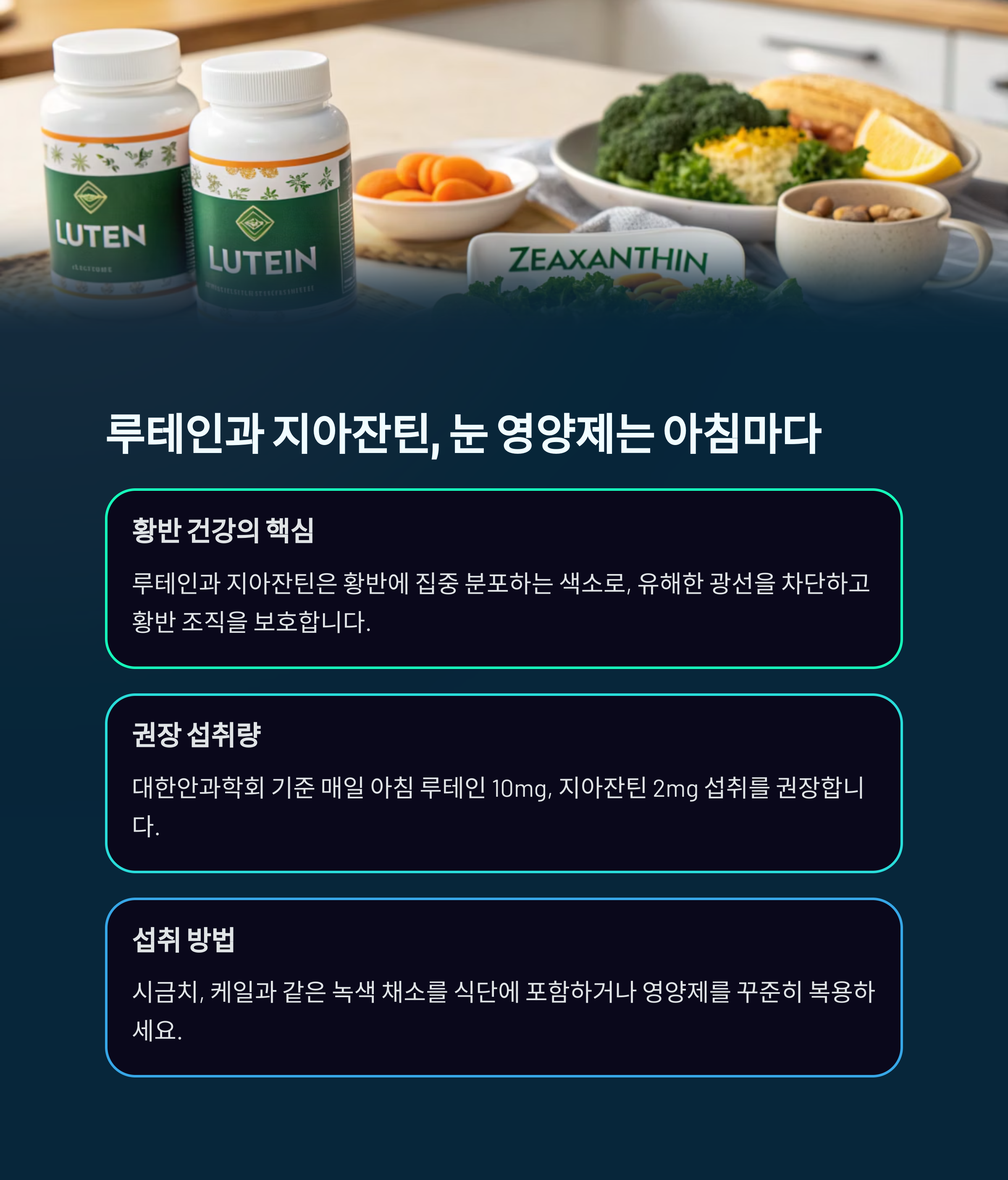 "하루 한 번, 꾸준한 섭취가 중년 시력 유지의 핵심"입니다.