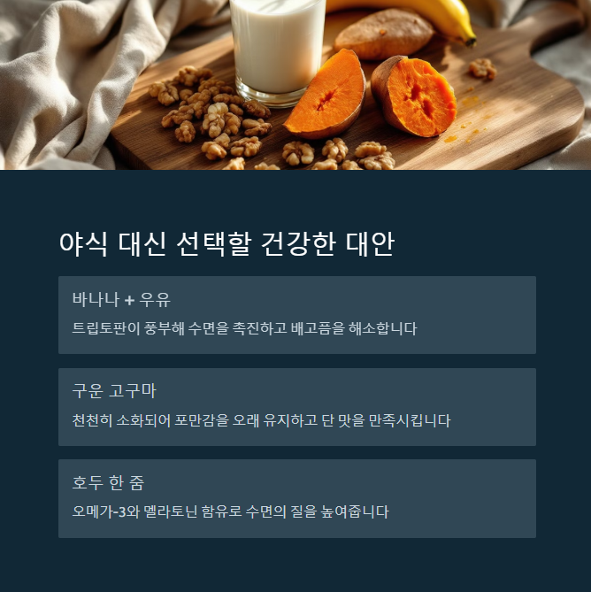 진짜 배가 고픈 날도 있잖아요? 그럴 땐 무조건 참기보단, 수면을 방해하지 않으면서도 속 편한 대체 음식이 있어요.