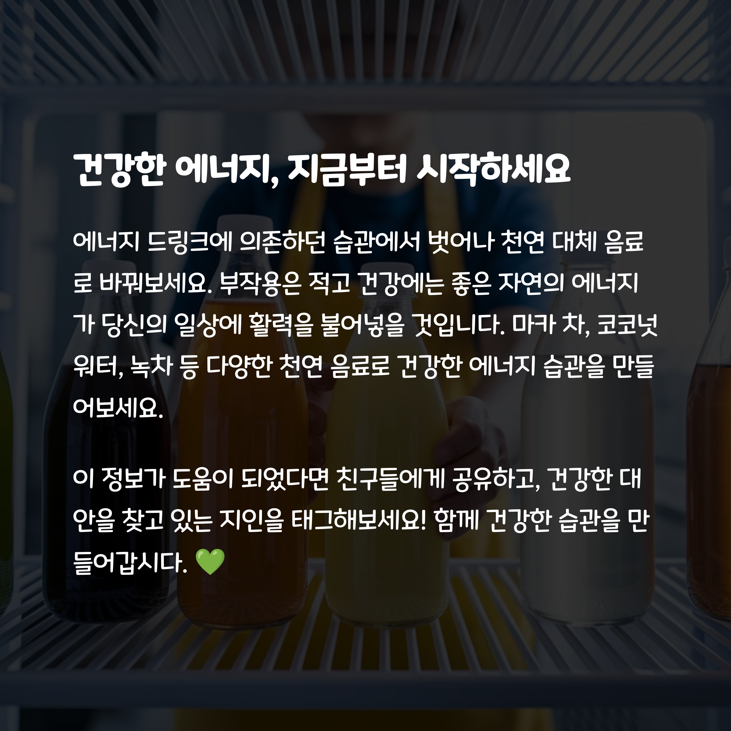 에너지 드링크의 실체, 그리고 피로 회복에 진짜 도움 되는 대체 음료까지! 지금부터 그 놀라운 내용을 하나하나 알려드릴게요.