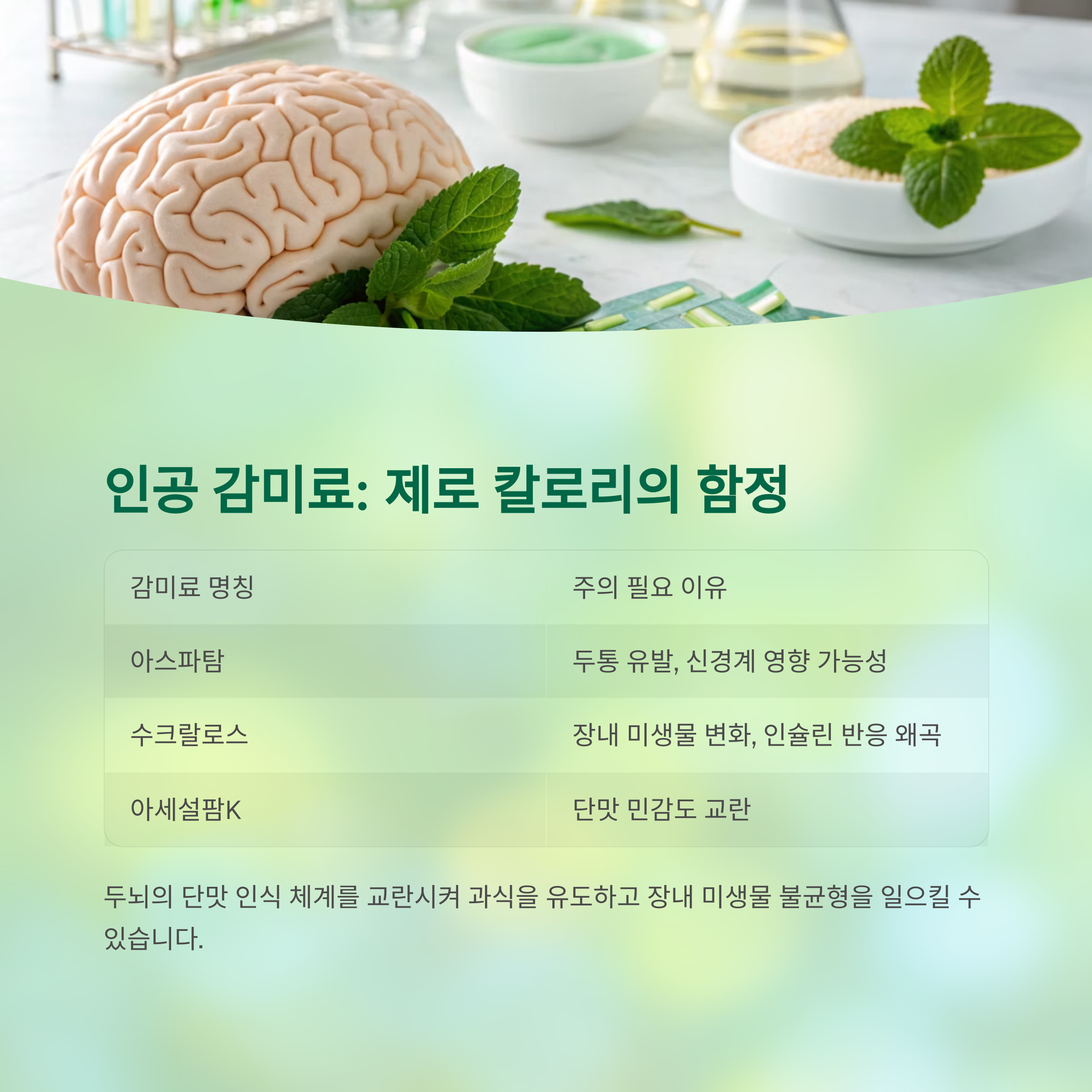 | 아스파탐 | 두통 유발, 신경계 영향 가능성 |