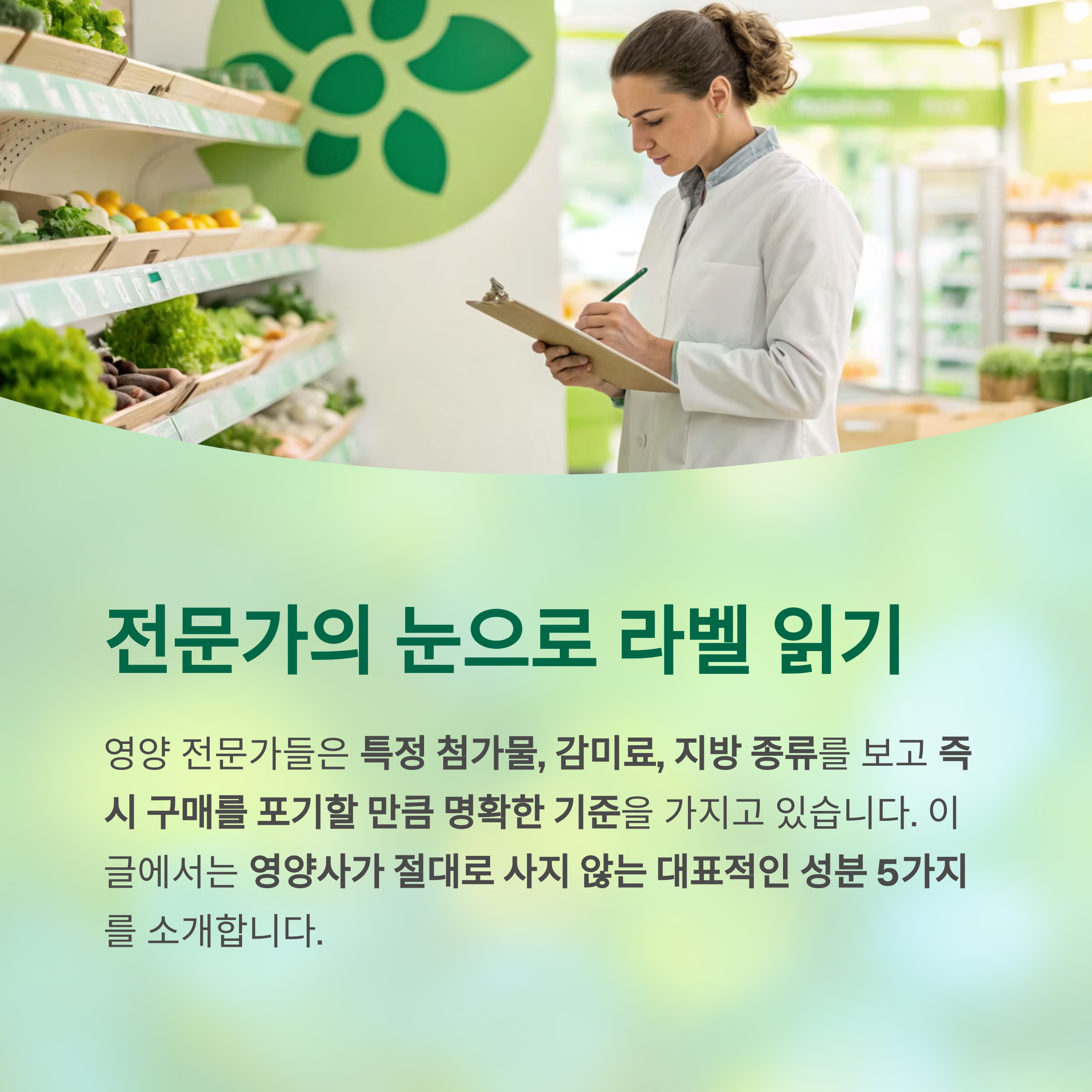 이번 글에서는 영양사가 절대로 사지 않는 대표적인 성분 5가지를 소개하고,