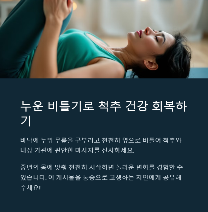 아래 두 가지 자세는 특히 중년에게 추천할 만한 회복 중심 동작이에요.