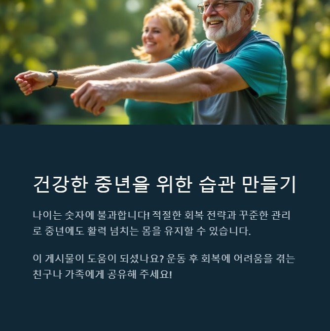 딱 하루 운동했을 뿐인데, 왜 3일을 끙끙 앓아야 했을까요? 중년의 회복은 ‘운동’보다 ‘그 이후’가 더 중요합니다.