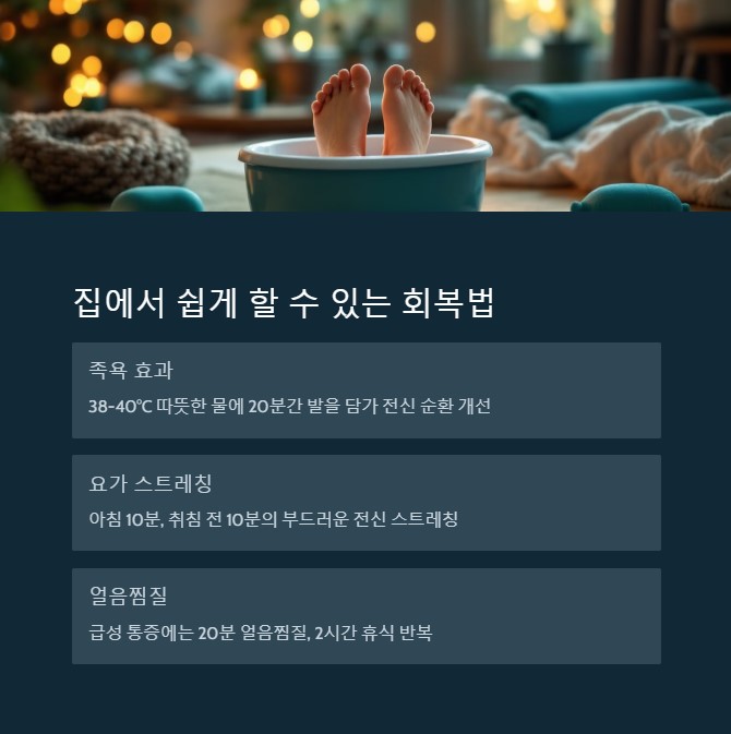 | 냉온욕(Cold & Hot Bath) | 혈액순환 개선, 부기 감소 | 고혈압이나 심장 질환자는 주의 필요 |