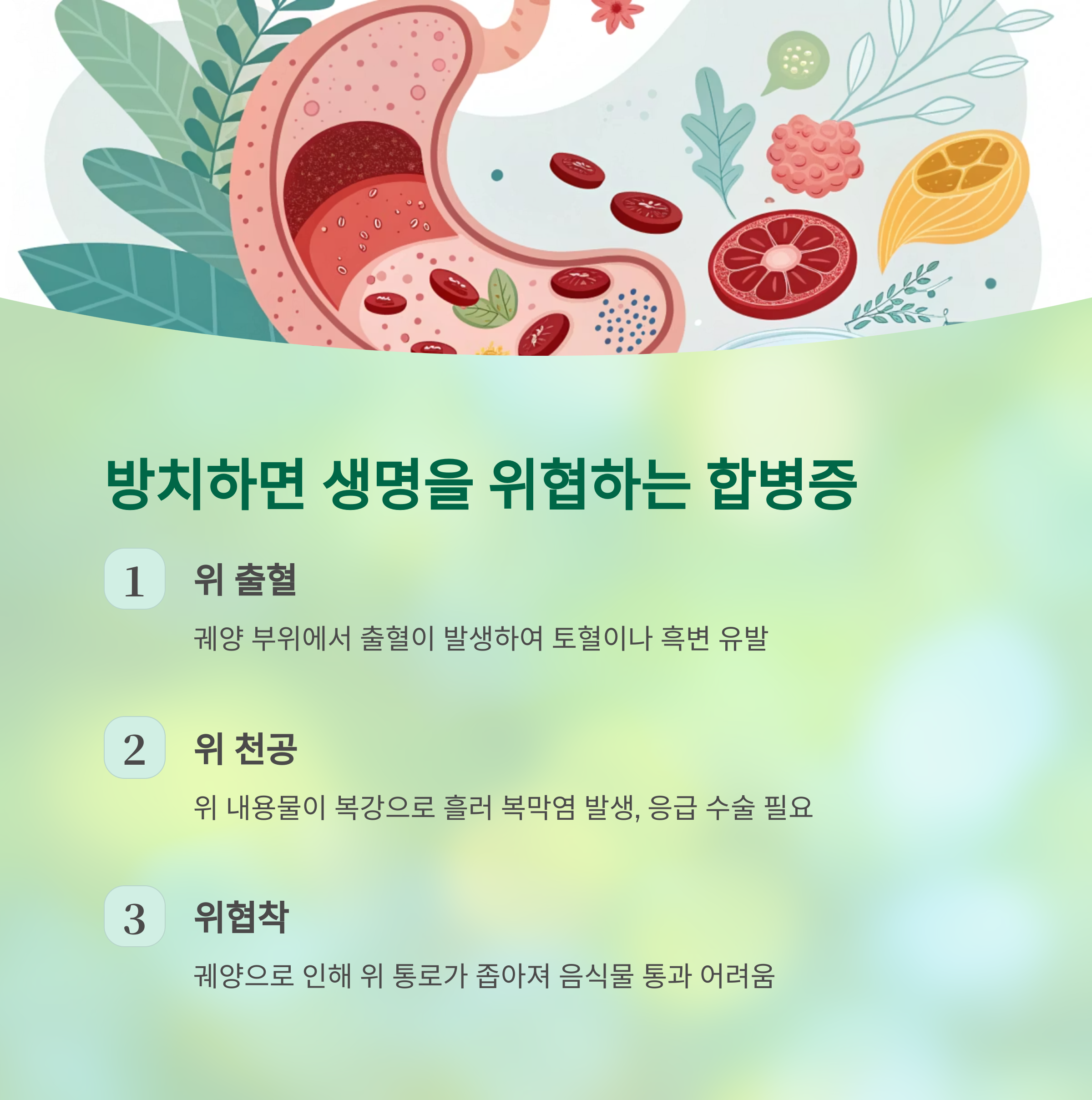 출혈, 천공, 암으로 이어질 수 있어 조기 발견과 관리가 필수입니다.