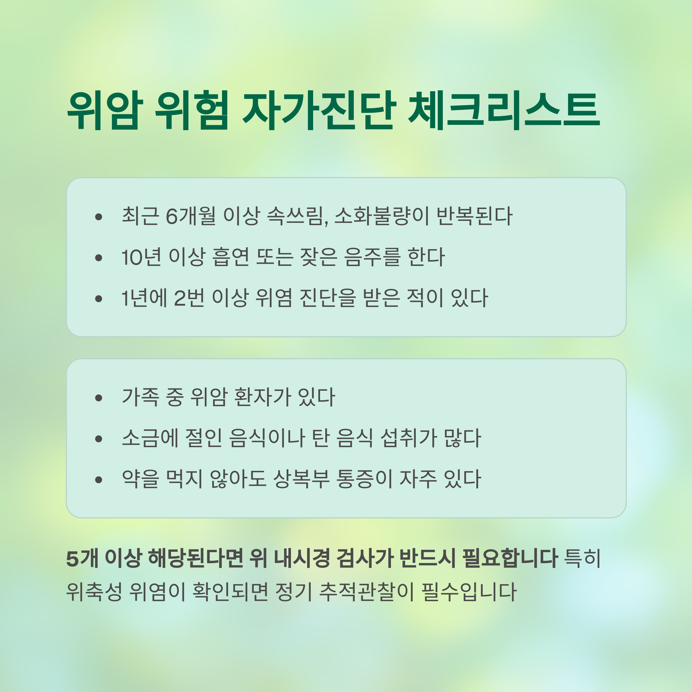 위암 위험 자가진단 체크리스트 (5개 이상 해당 시 병원 권장)