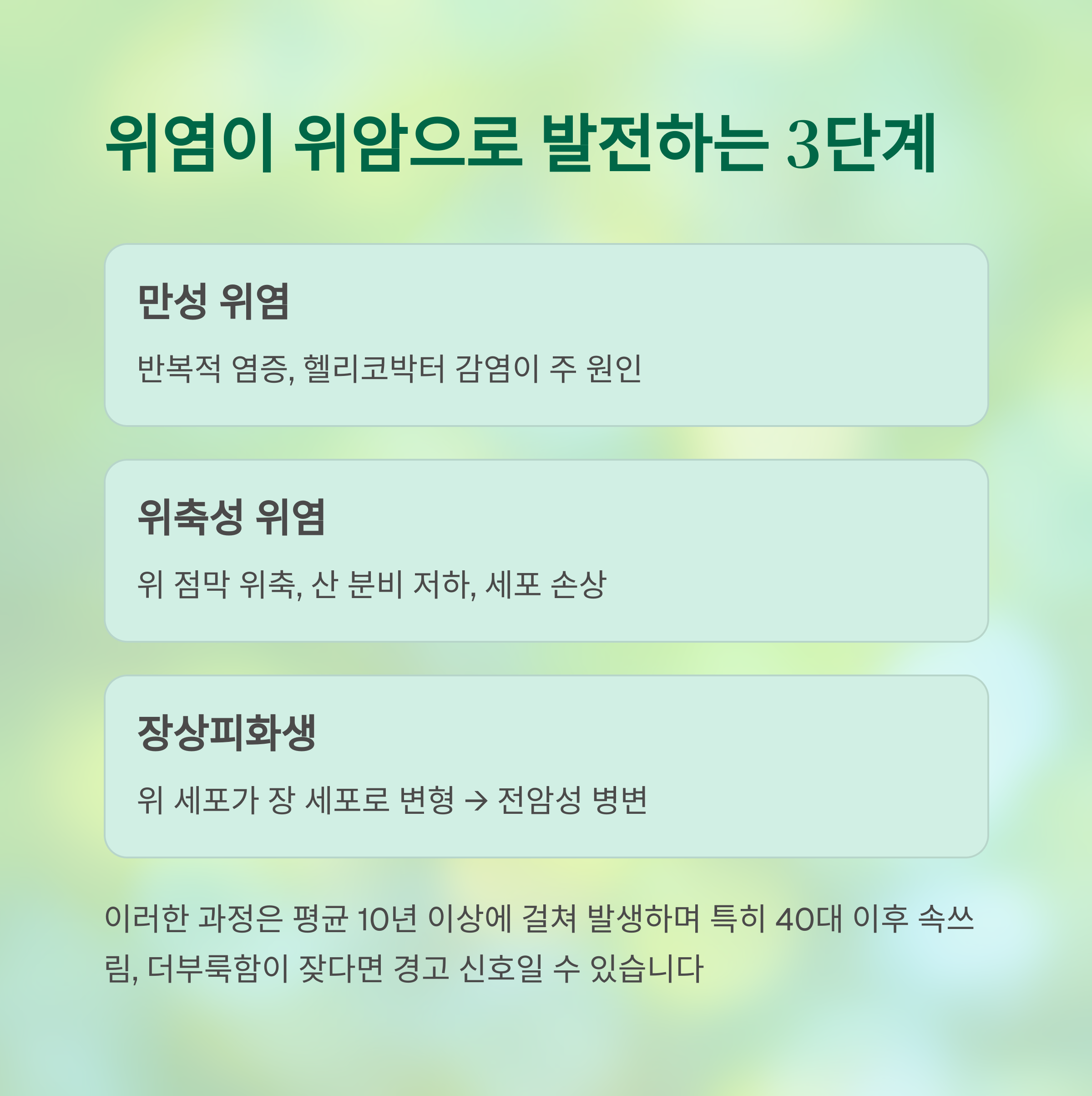 위염은 ‘시간’을 두고 조용히 위암으로 발전합니다