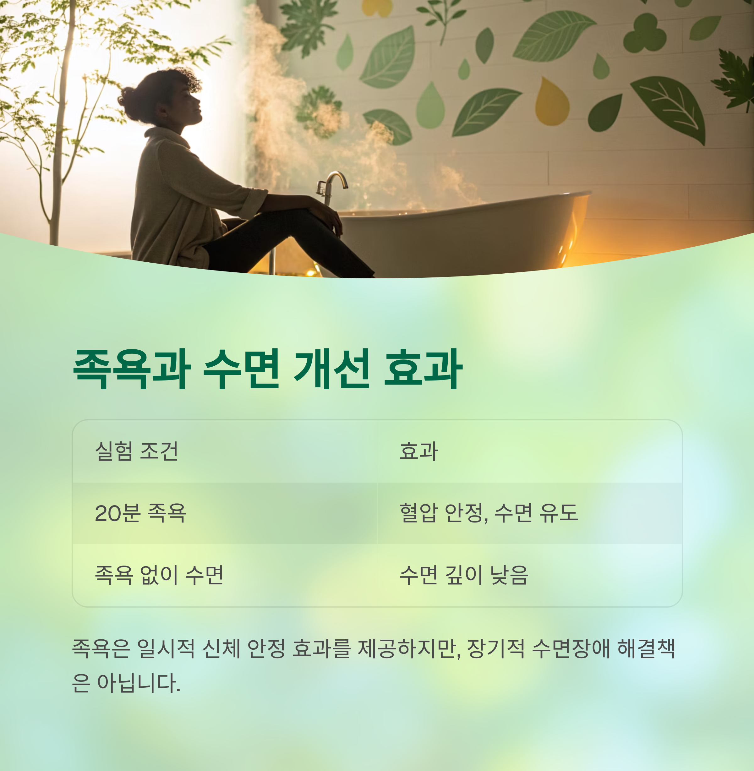 | 20분 족욕 | 혈압 안정, 수면 유도 |