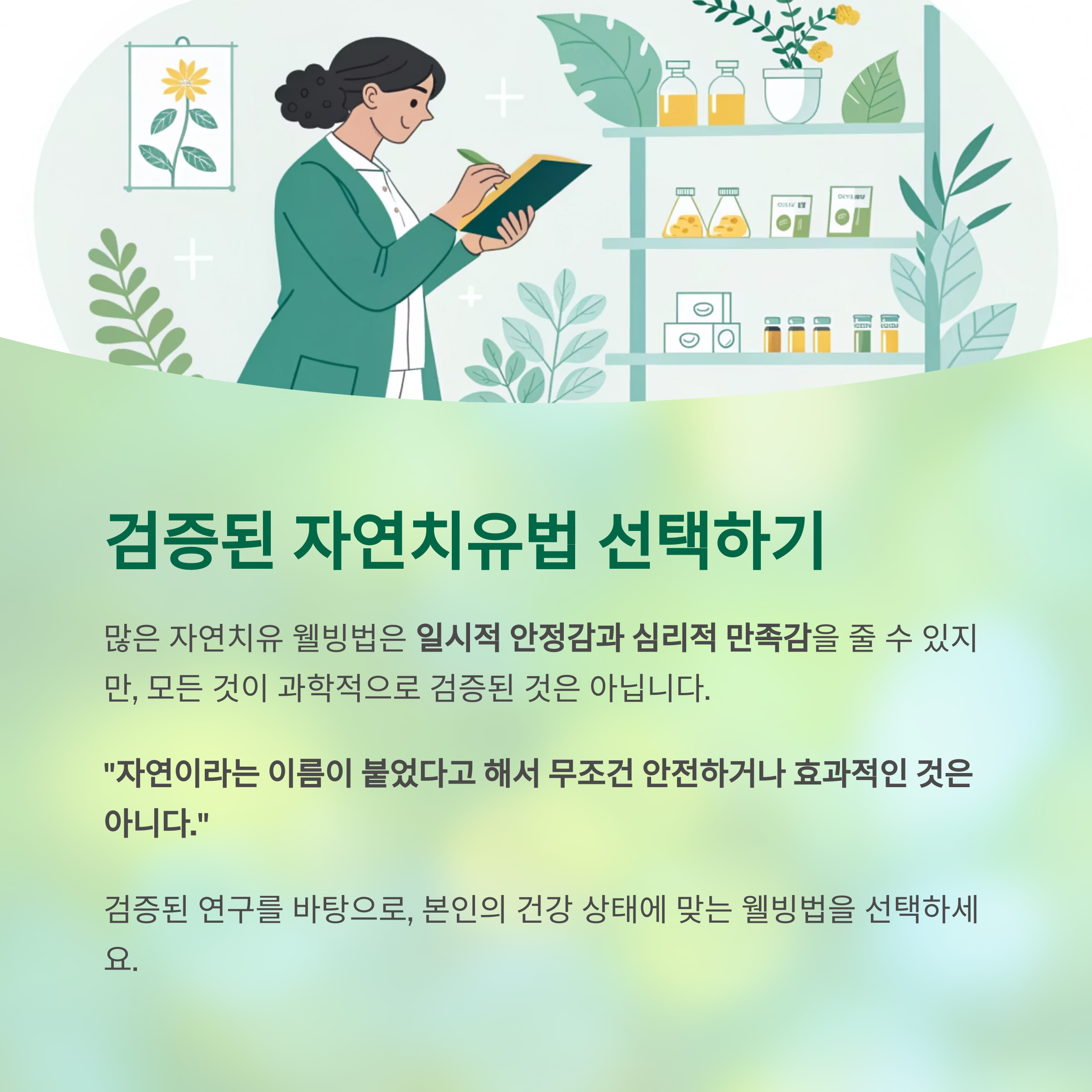 "자연이라는 이름이 붙었다고 해서 무조건 안전하거나 효과적인 것은 아니다."