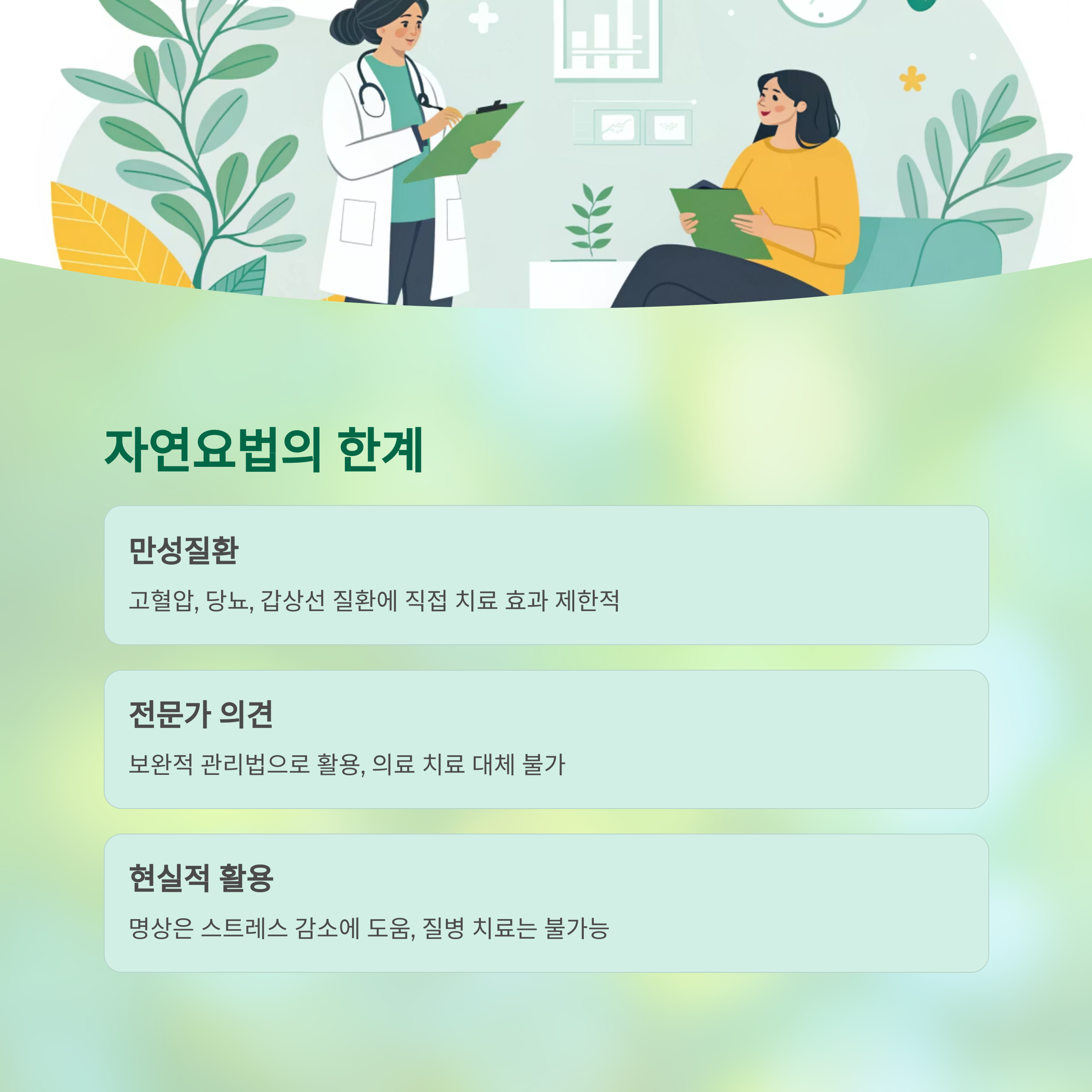 전문가들은 "자연요법은 치료가 아닌 ‘보완적 관리법’이며,