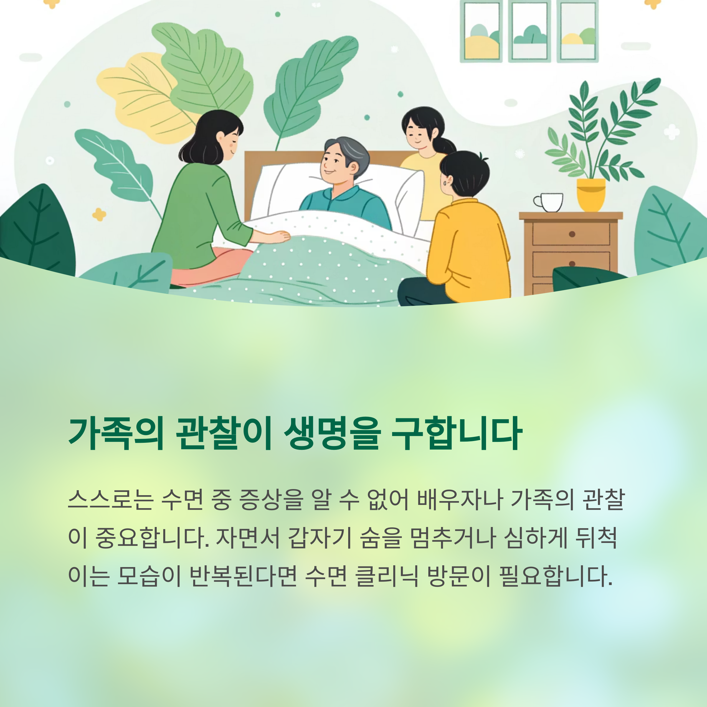 스스로는 수면 중 증상을 알 수 없기 때문에