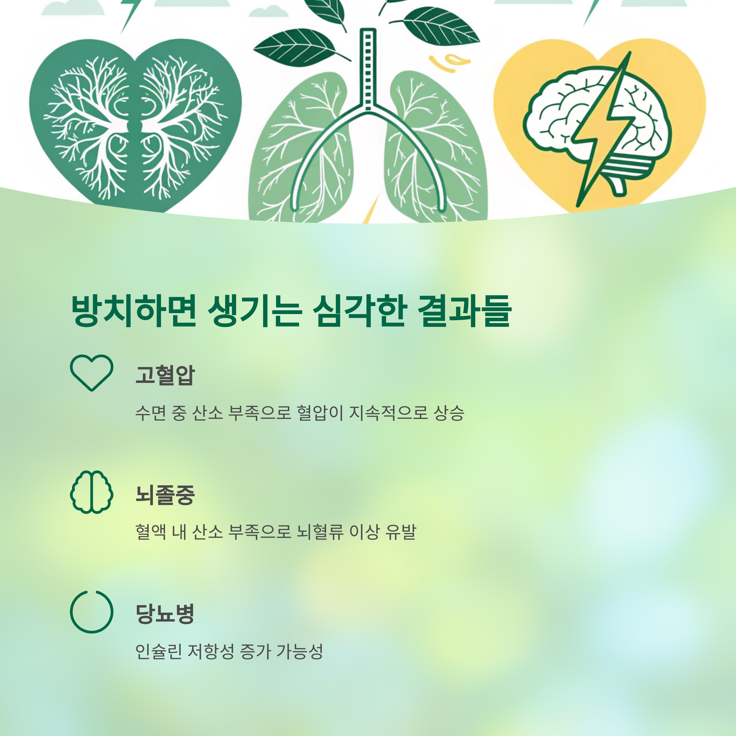 | 고혈압 | 수면 중 산소 부족으로 혈압이 지속적으로 상승 |