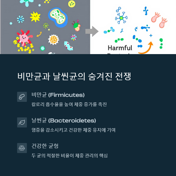 | Firmicutes (비만균) | 칼로리 흡수 ↑, 지방 저장 ↑ |