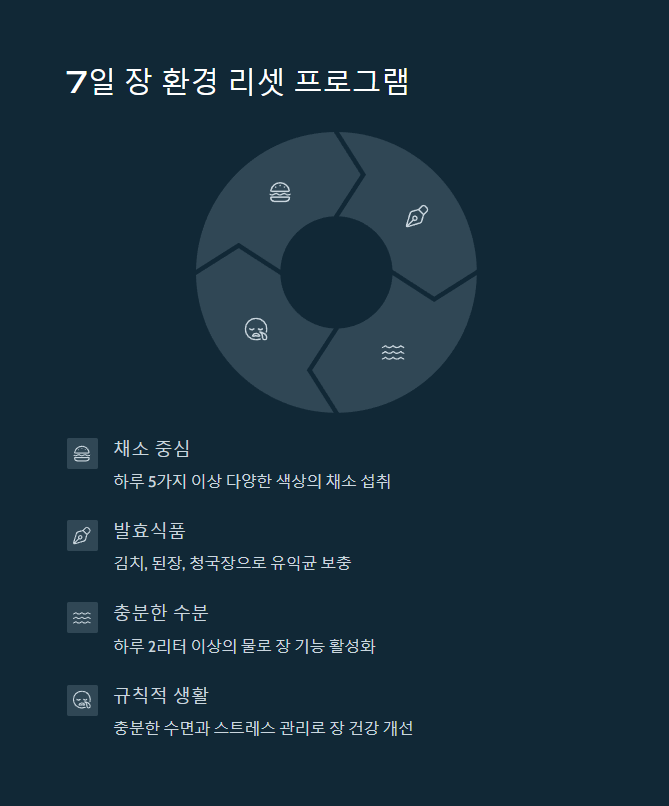 - 설탕·가공식품 OUT → 발효 식품, 채소 중심 식사