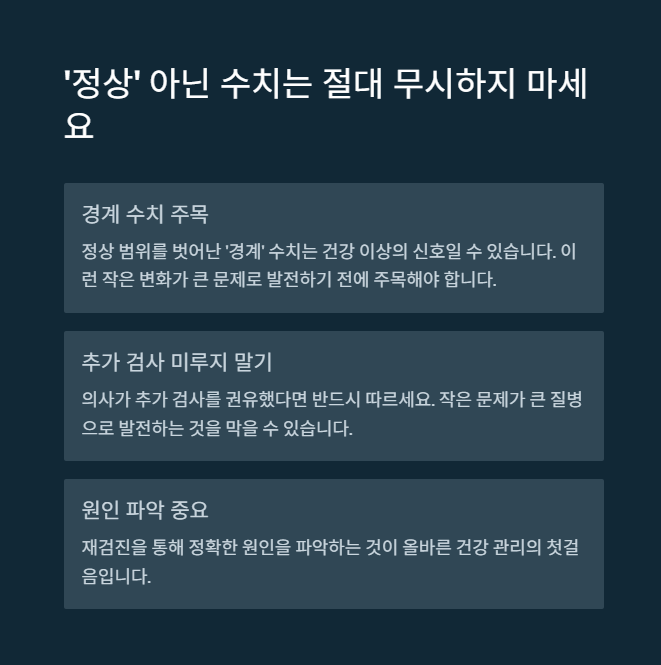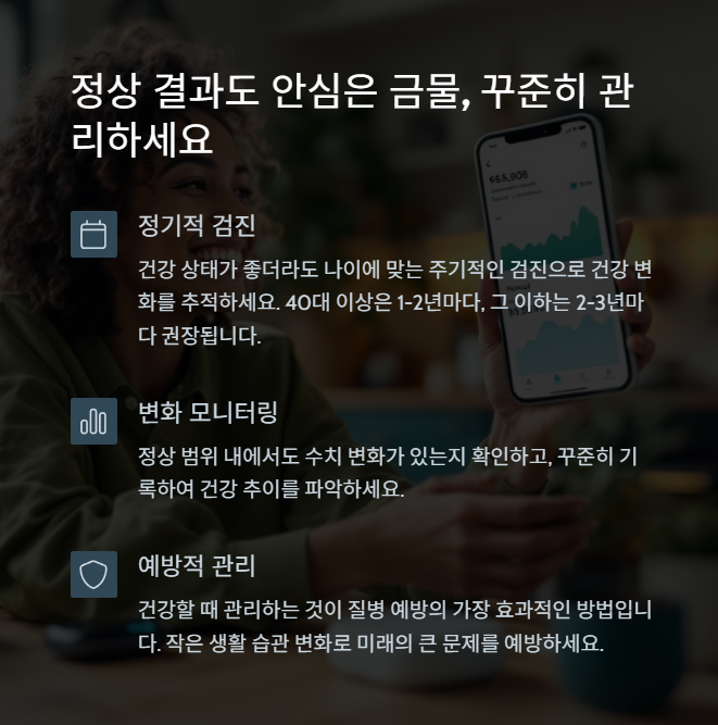 정상이라도 꾸준한 관리가 중요해요. 생활습관 유지와 정기 검진 주기 설정은 필수입니다.