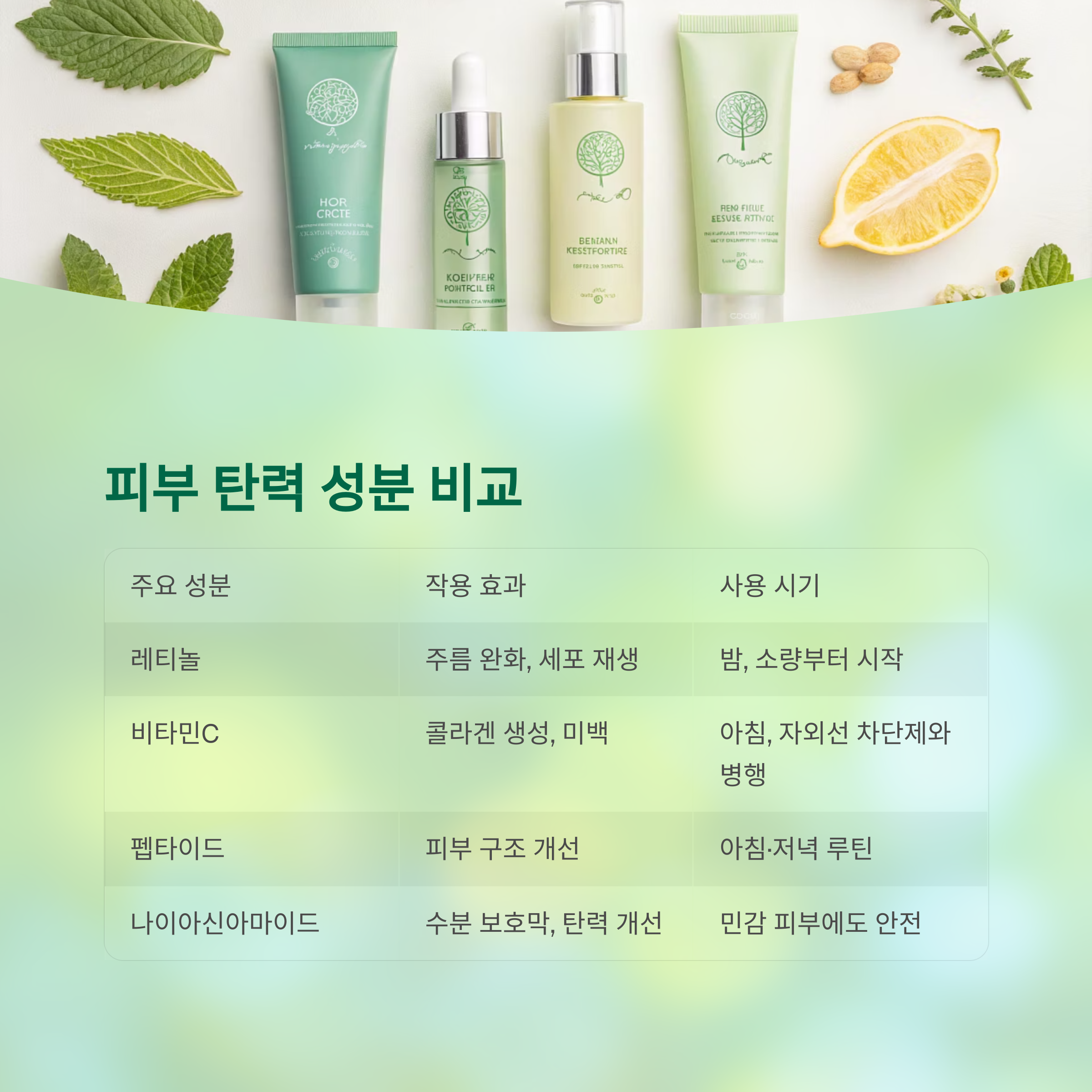 피부 탄력을 위한 주요 성분 비교표