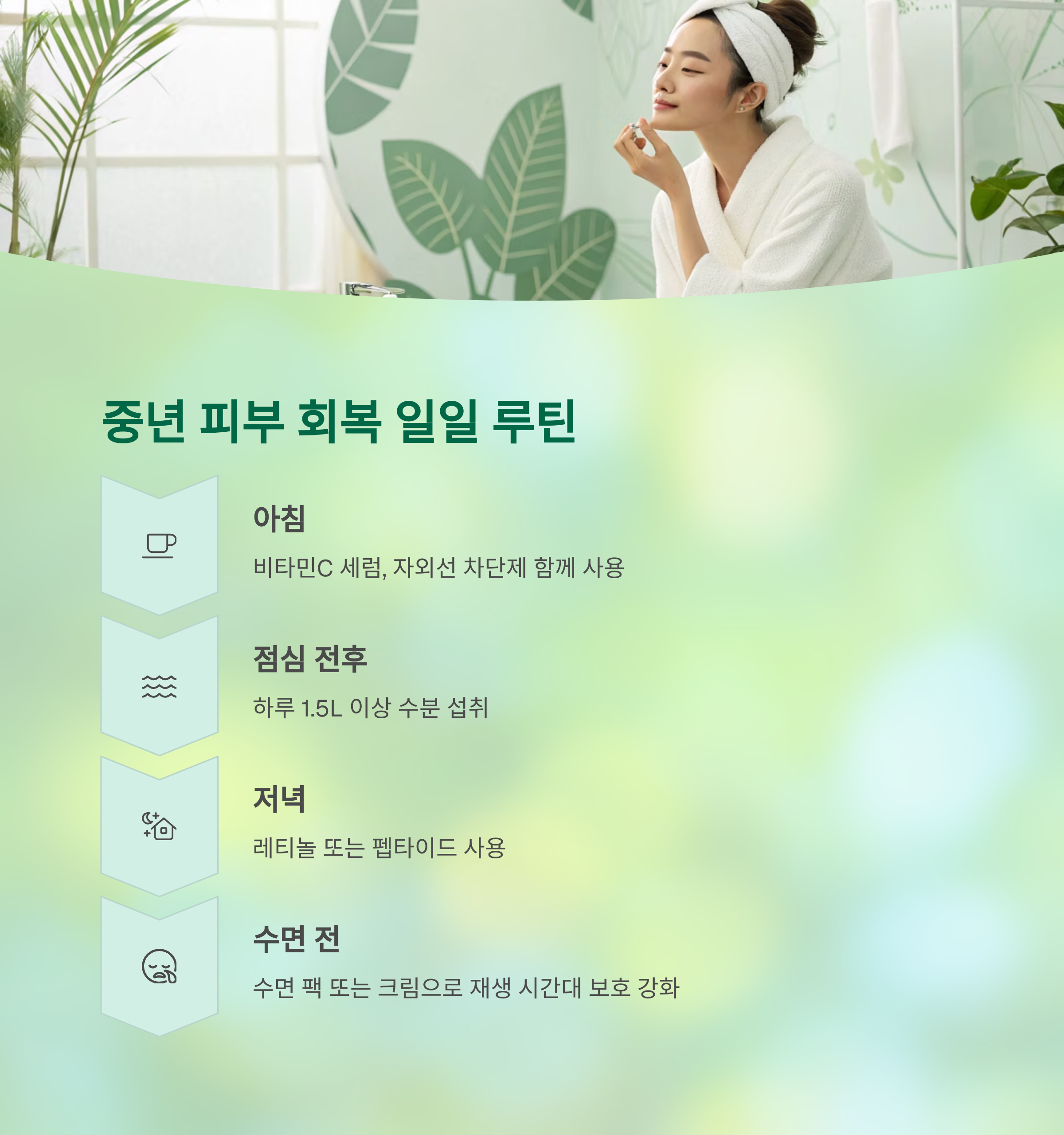 중년 피부 회복을 위한 일일 루틴 예시