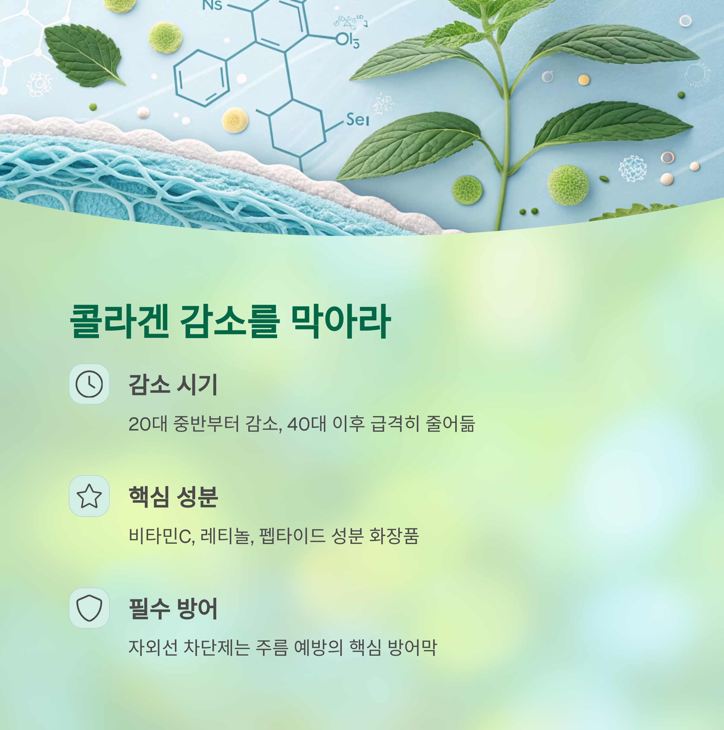 40대 이후에는 급격히 줄어들면서 탄력 저하와 주름의 주범이 됩니다.