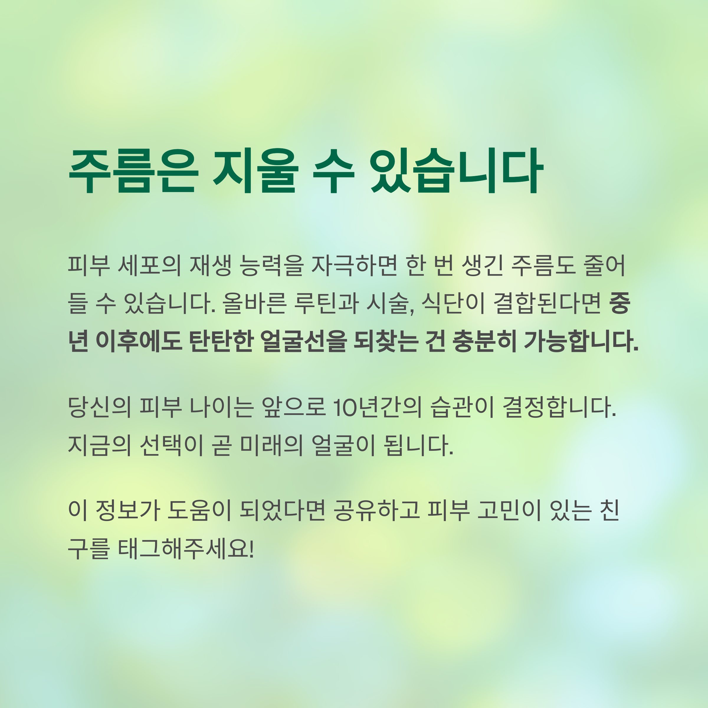 결론: 주름은 지울 수 있다, 피부는 다시 만들어진다