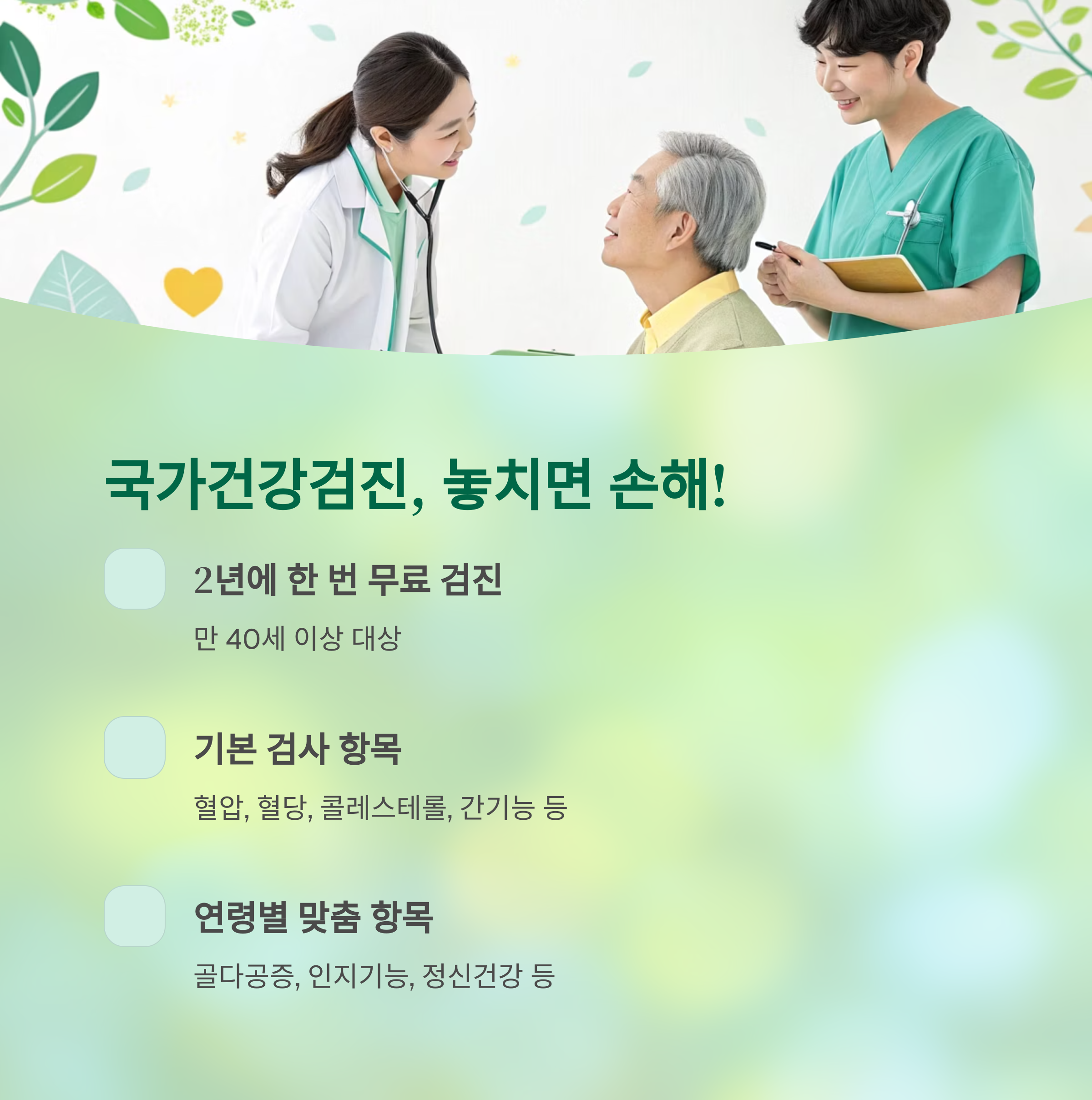 **연령별 맞춤 항목(골다공증, 인지기능, 정신건강 등)**도 함께 제공됩니다.