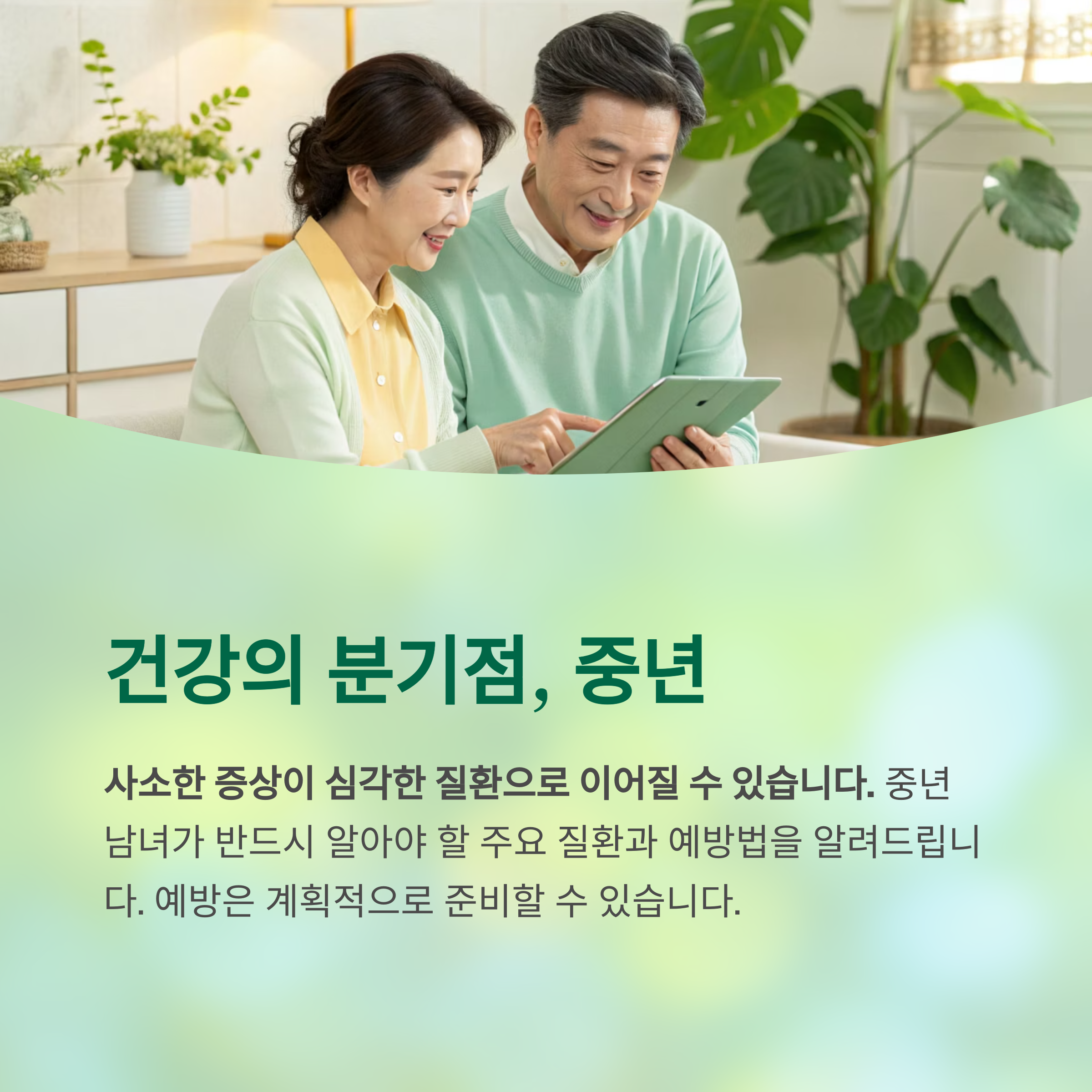 중년은 건강의 분기점이라 할 수 있습니다.