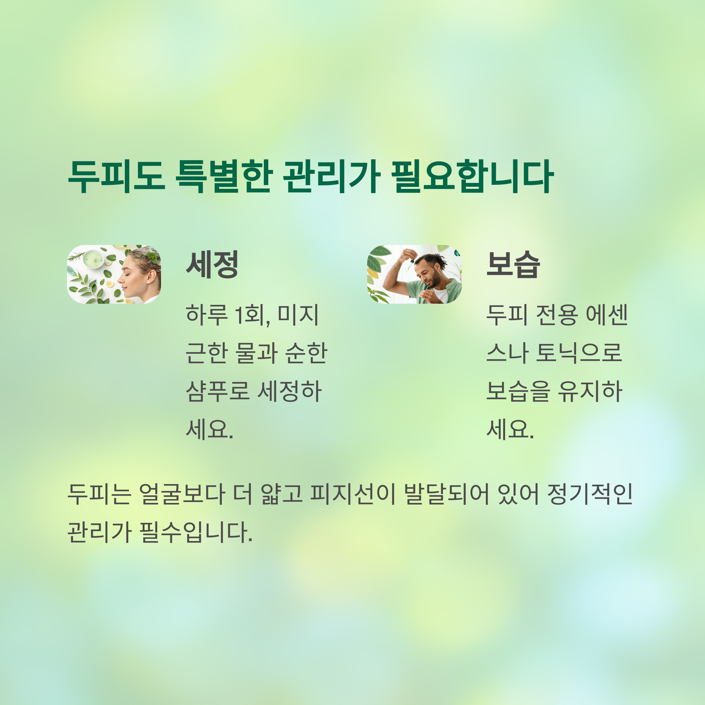 두피는 얼굴 피부보다 더 얇고 피지선이 발달되어 있습니다.
