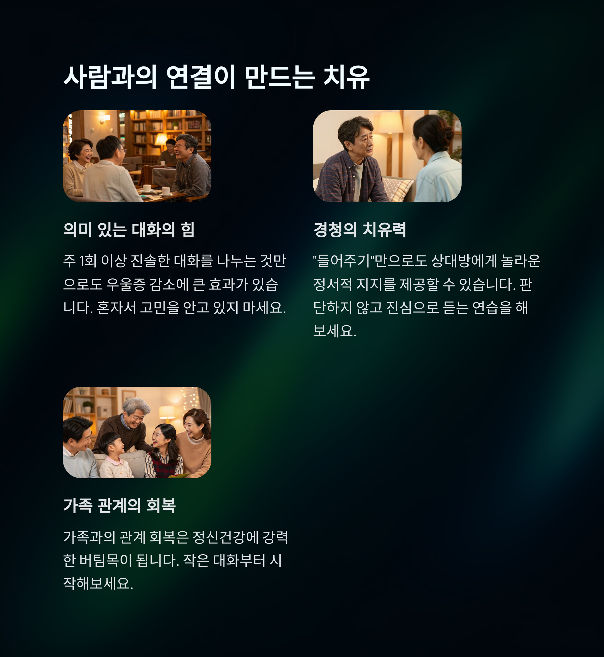 "마음을 나누는 관계"가 가장 강력한 치유입니다.