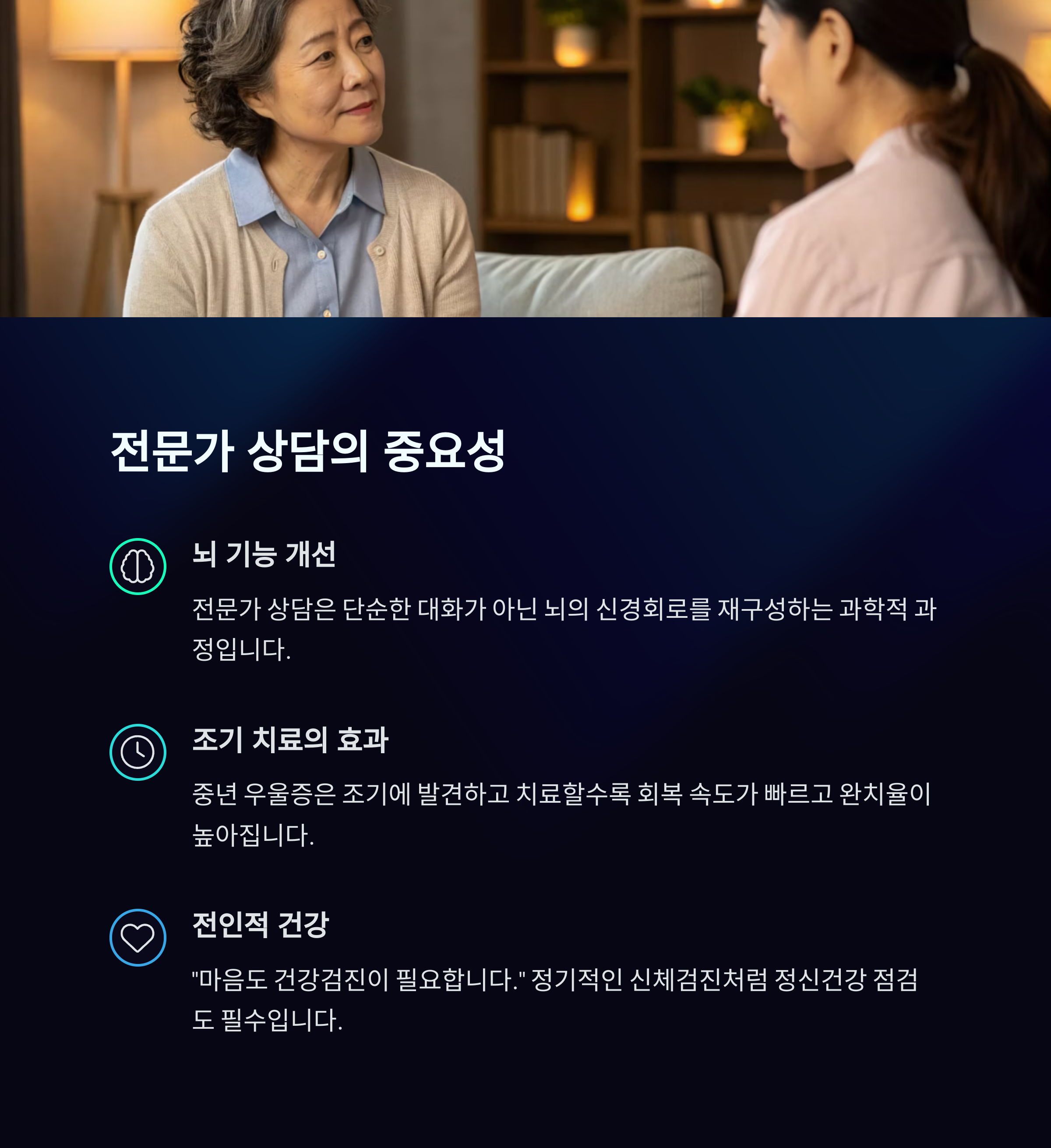 조기 상담은 빠른 회복을 돕고, 악화를 막을 수 있습니다.