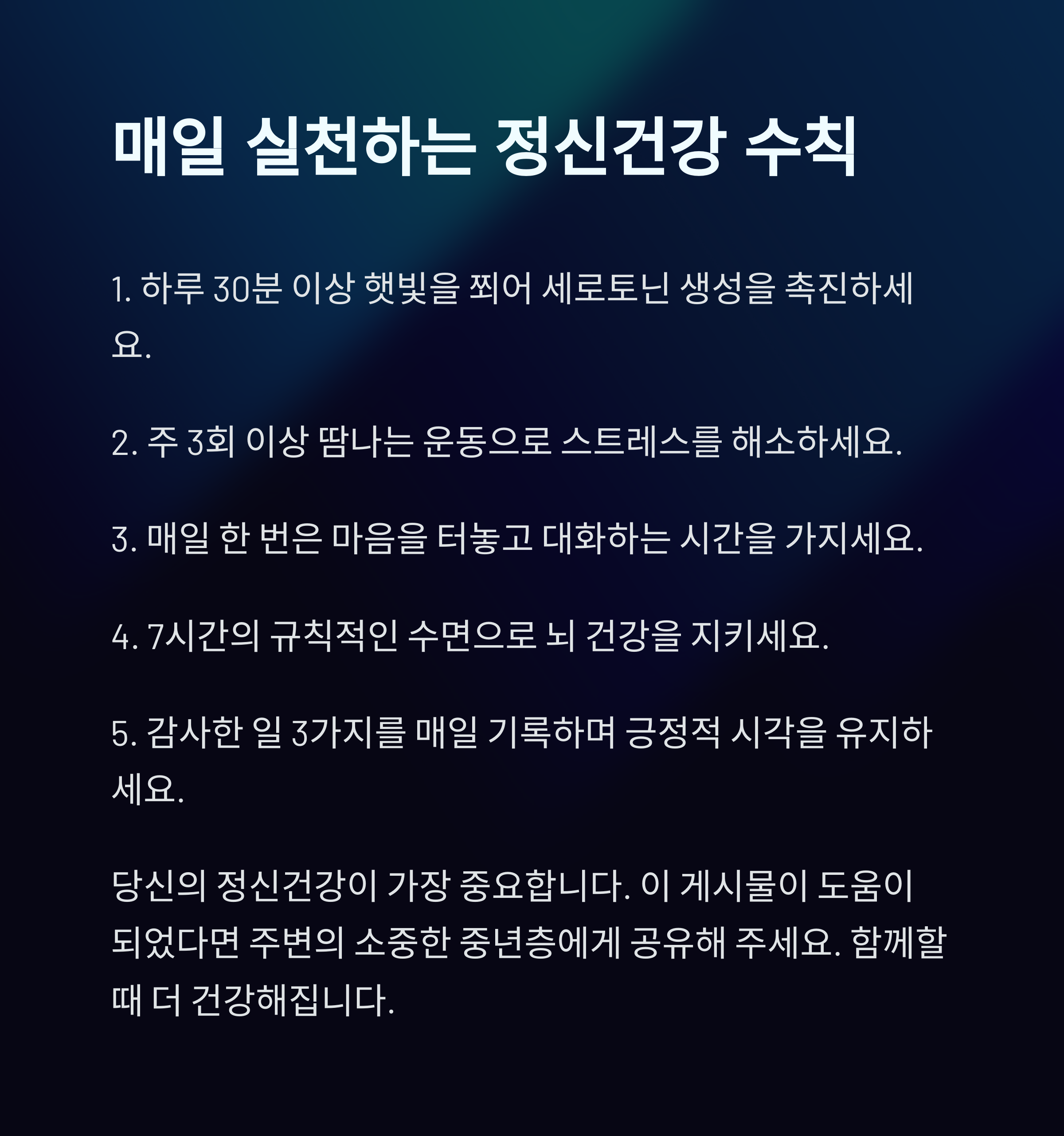 10. 매일 실천하는 정신건강 수칙 5가지