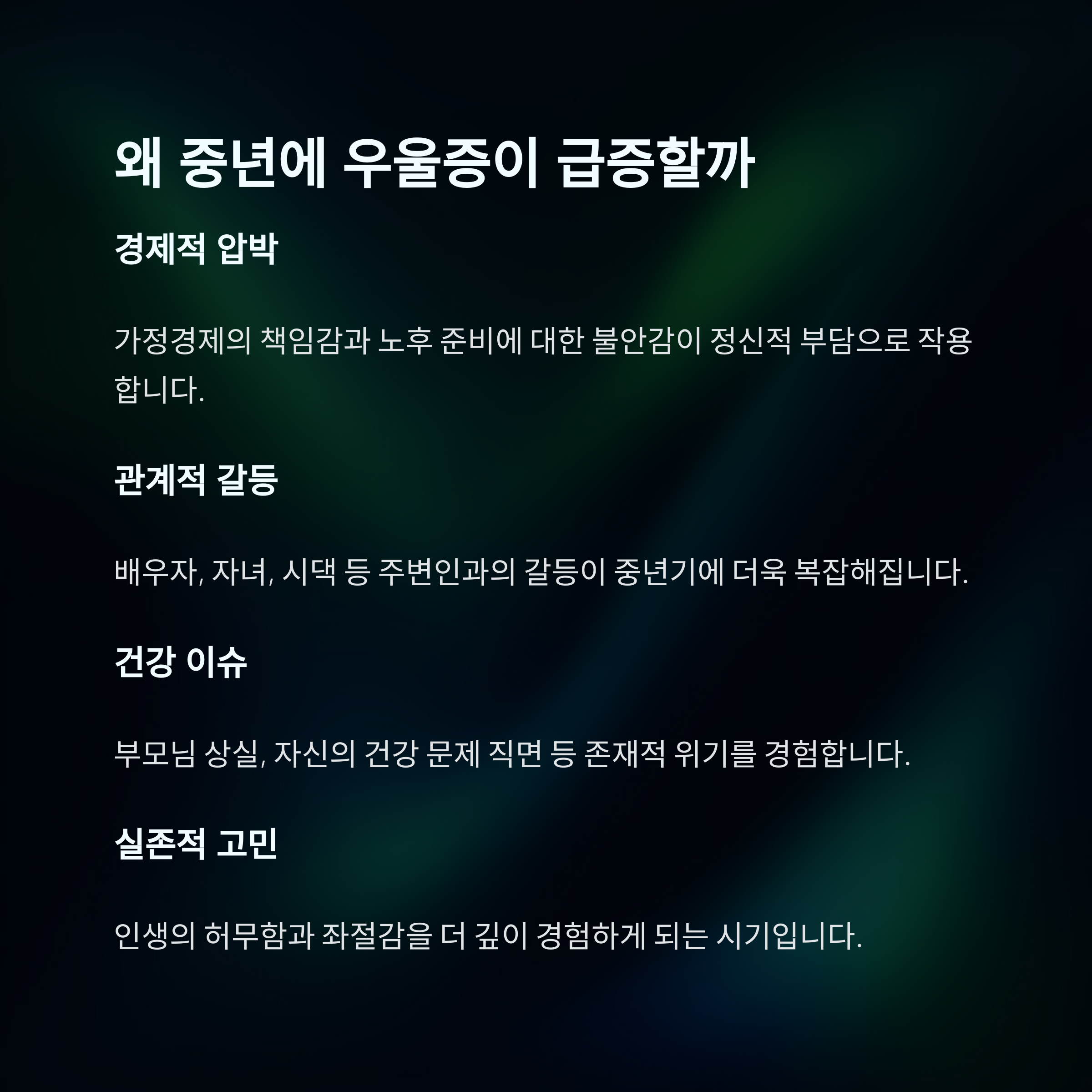 1. 중년 우울증, 조용히 찾아오는 감정의 침몰