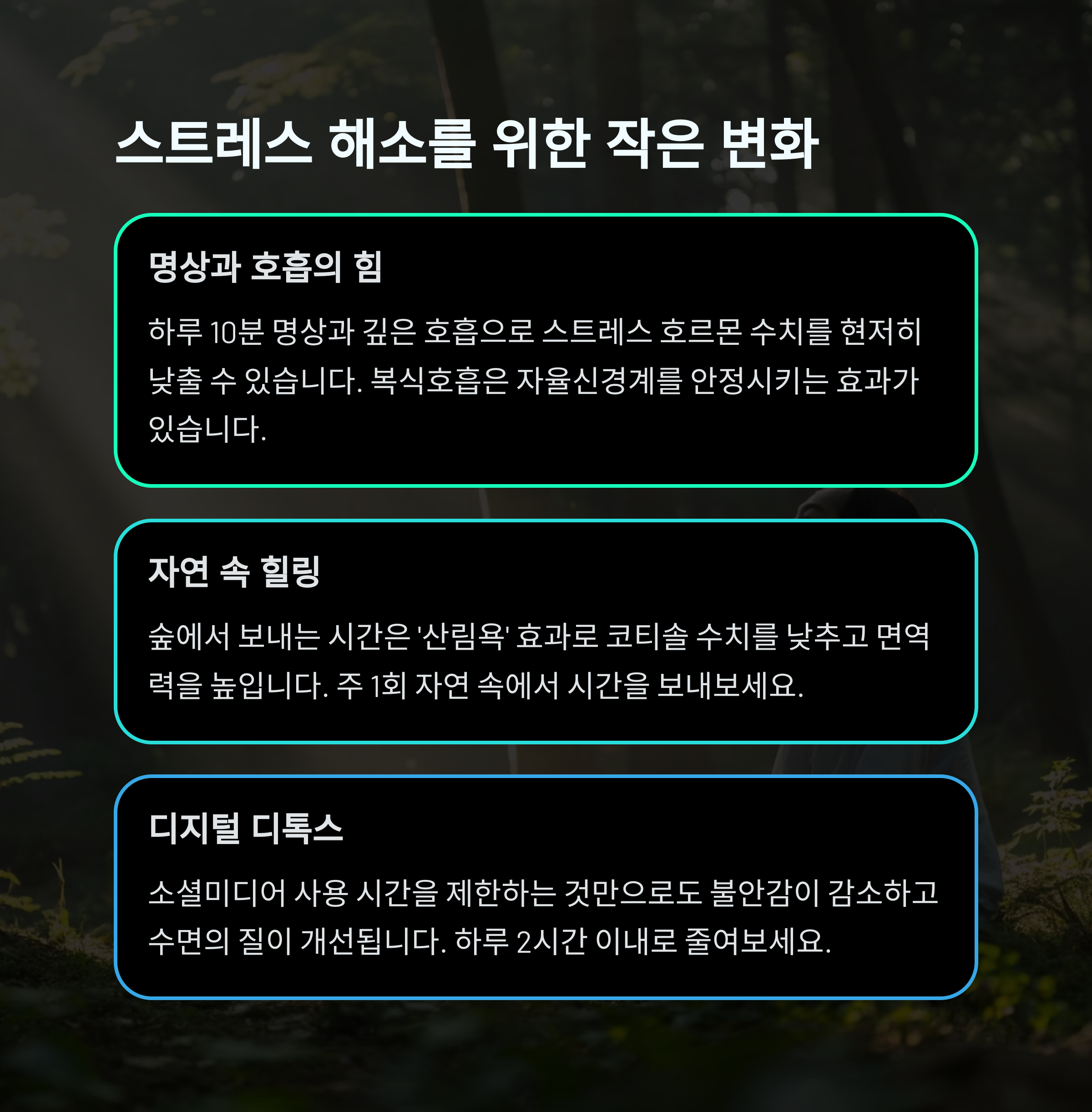 작은 습관 변화만으로 스트레스를 효과적으로 관리할 수 있습니다.
