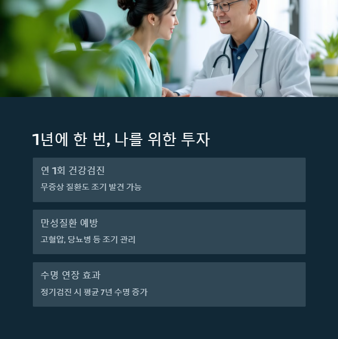 ‘나는 건강하니까 괜찮아’라는 생각, 정말 위험하답니다. 무증상으로 진행되는 질환들이 많아서 건강검진은 필수예요. 특히 중년 이후에는 1년에 한 번은 정기검진을 받는 게 좋아요. 간단하게 혈압, 혈당, 콜레스테롤 수치만 체크해도 큰 병을 예방할 수 있어요.