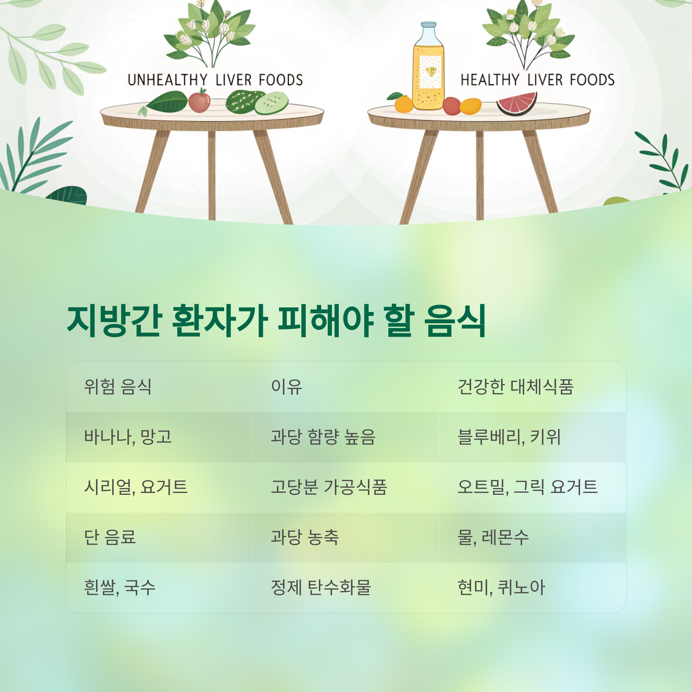 지방간 식단에서 피해야 할 음식 요약표