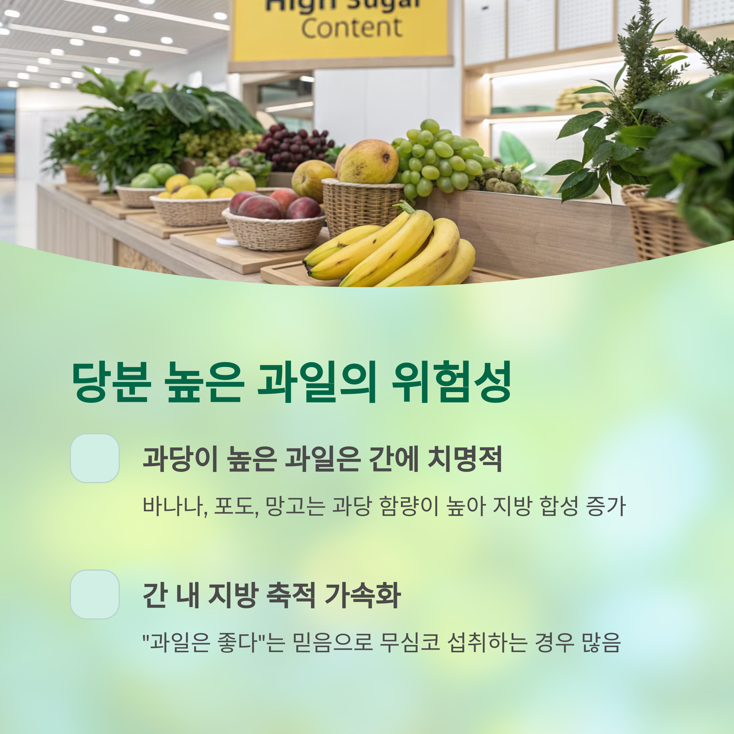 | 바나나, 망고 | 과당 함량 높음 | 블루베리, 키위 |