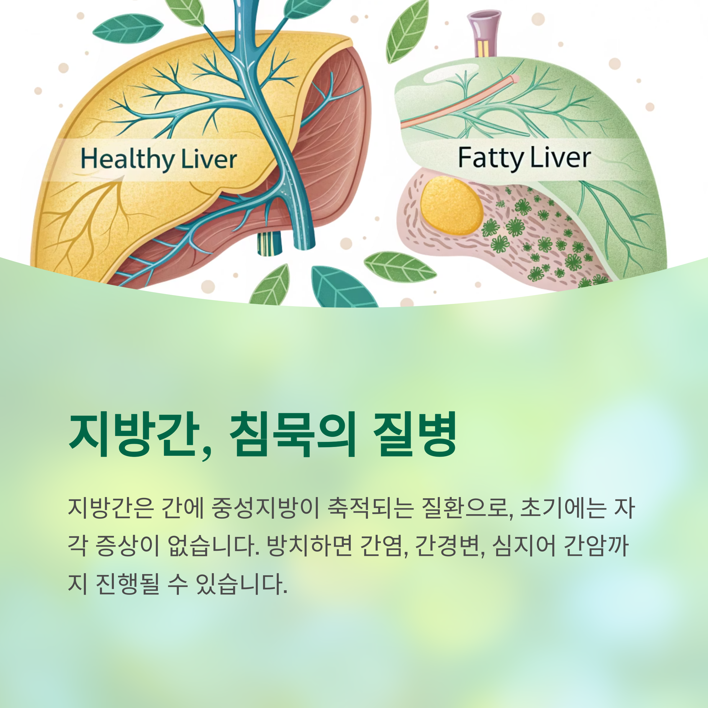 대부분 자각 증상이 없어 초기에 발견하기 어렵지만, 방치하면 간염, 간경변, 심지어 간암까지 이어질 수 있습니다.