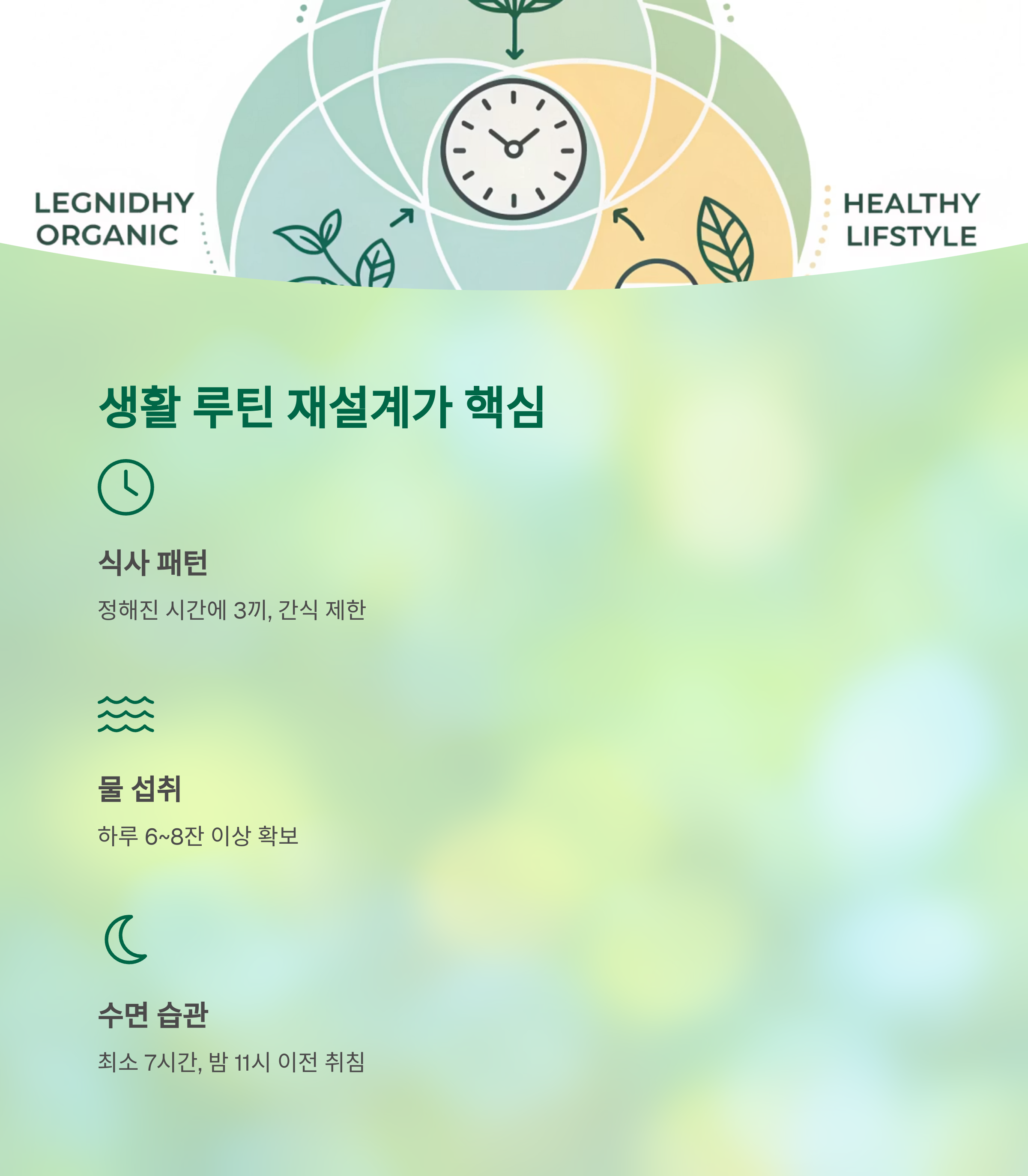 | 수면 습관 | 최소 7시간 이상, 밤 11시 이전 취침 |