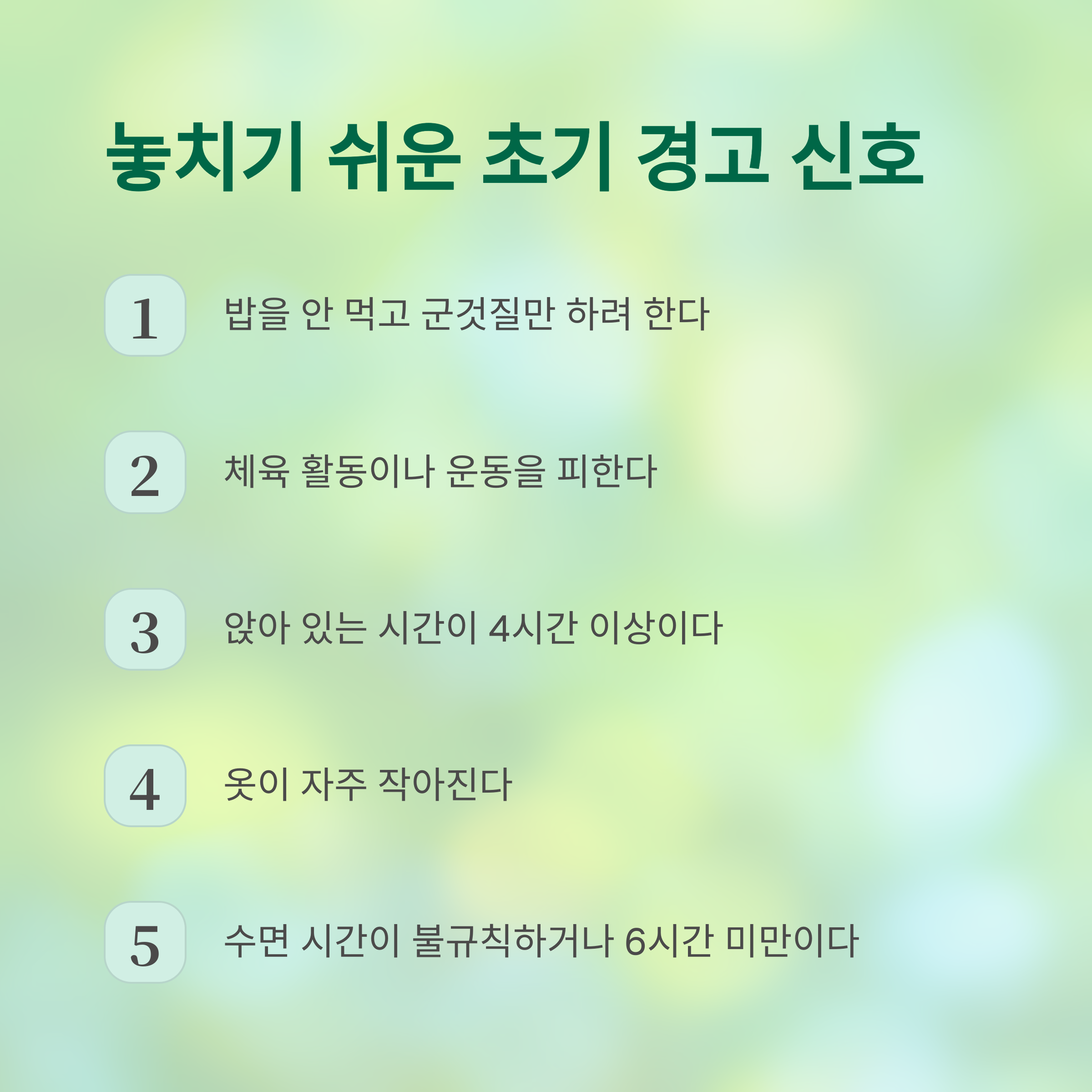 다음과 같은 신호들이 반복된다면 이미 ‘위험 구간’에 진입한 것일 수 있습니다.