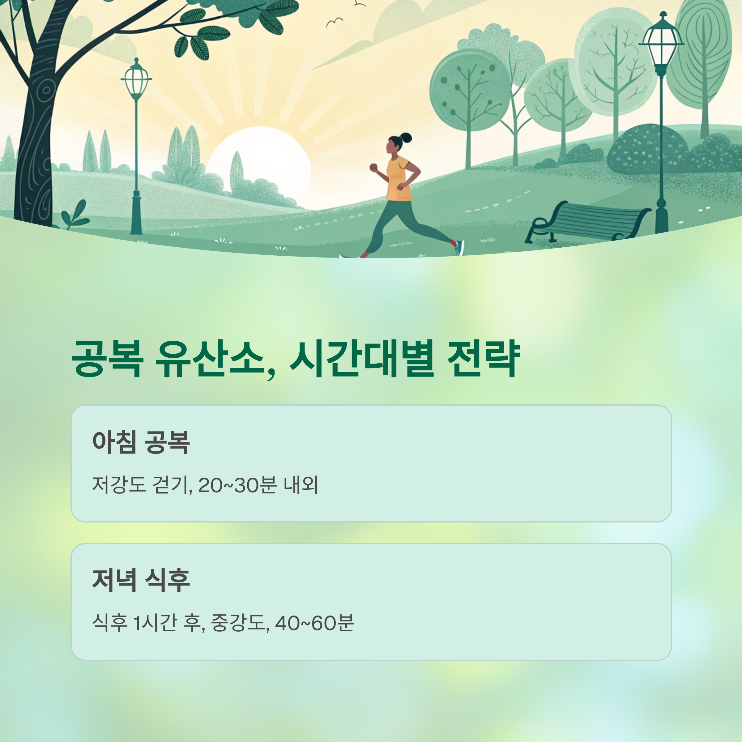 | 아침 공복 | 저강도 걷기 | 20~30분 |