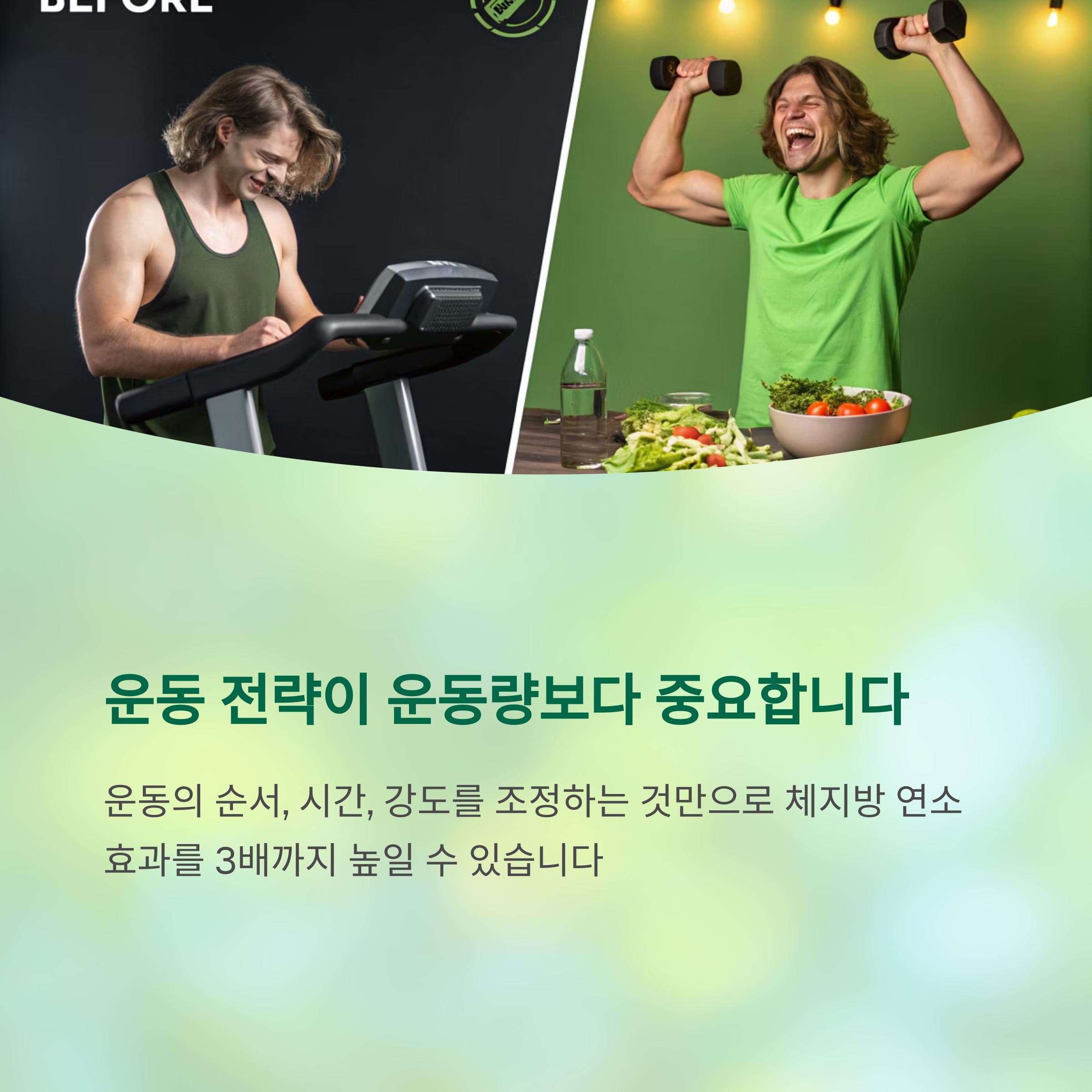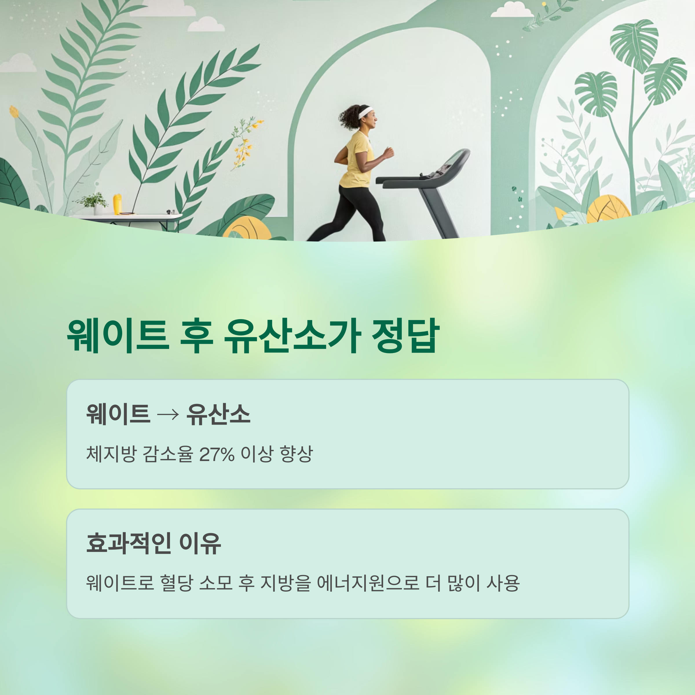 웨이트 → 유산소 순서가 체지방 감소율을 평균 27% 이상 향상시킨다고 밝혀졌습니다