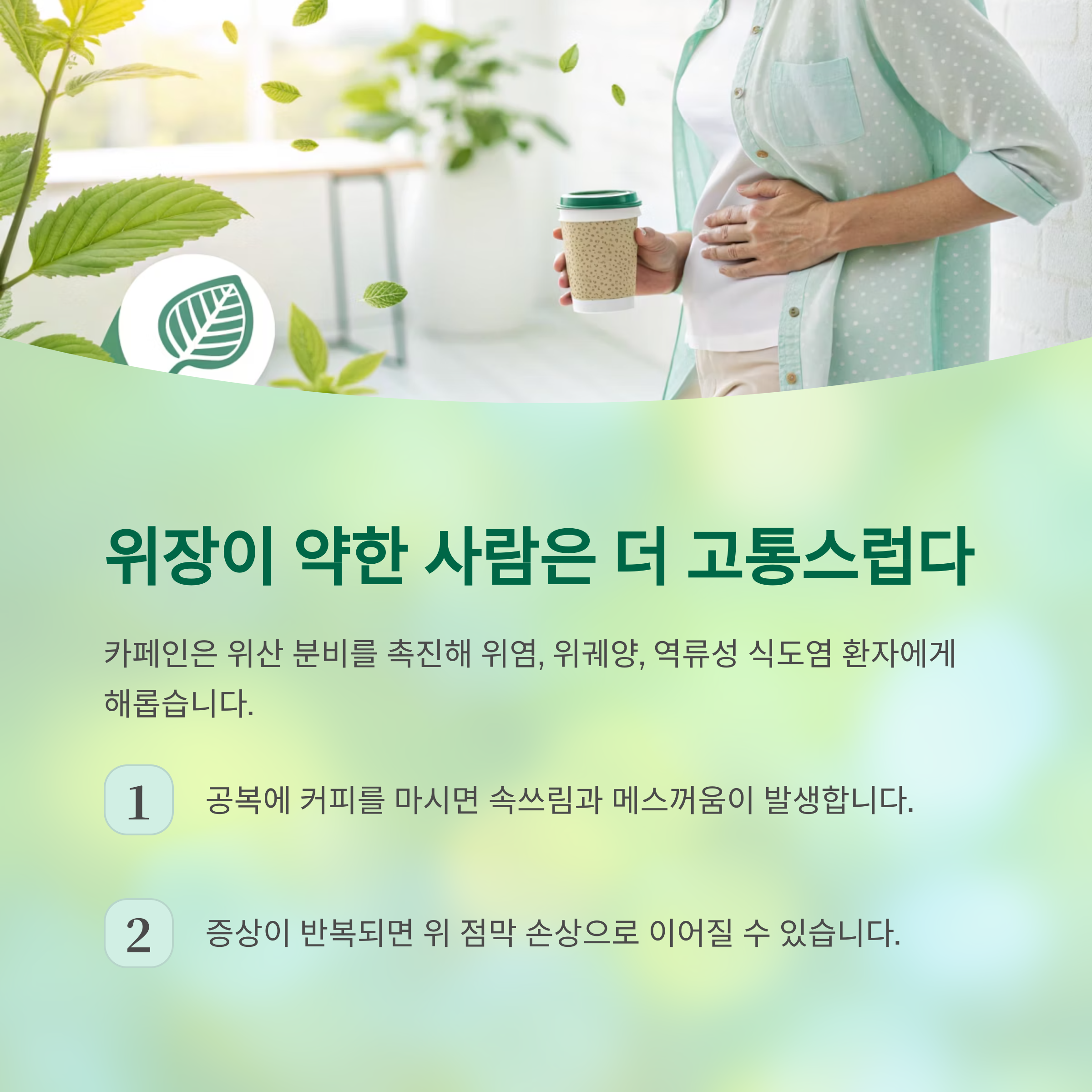 카페인은 위산 분비를 촉진해 위염, 위궤양, 역류성 식도염