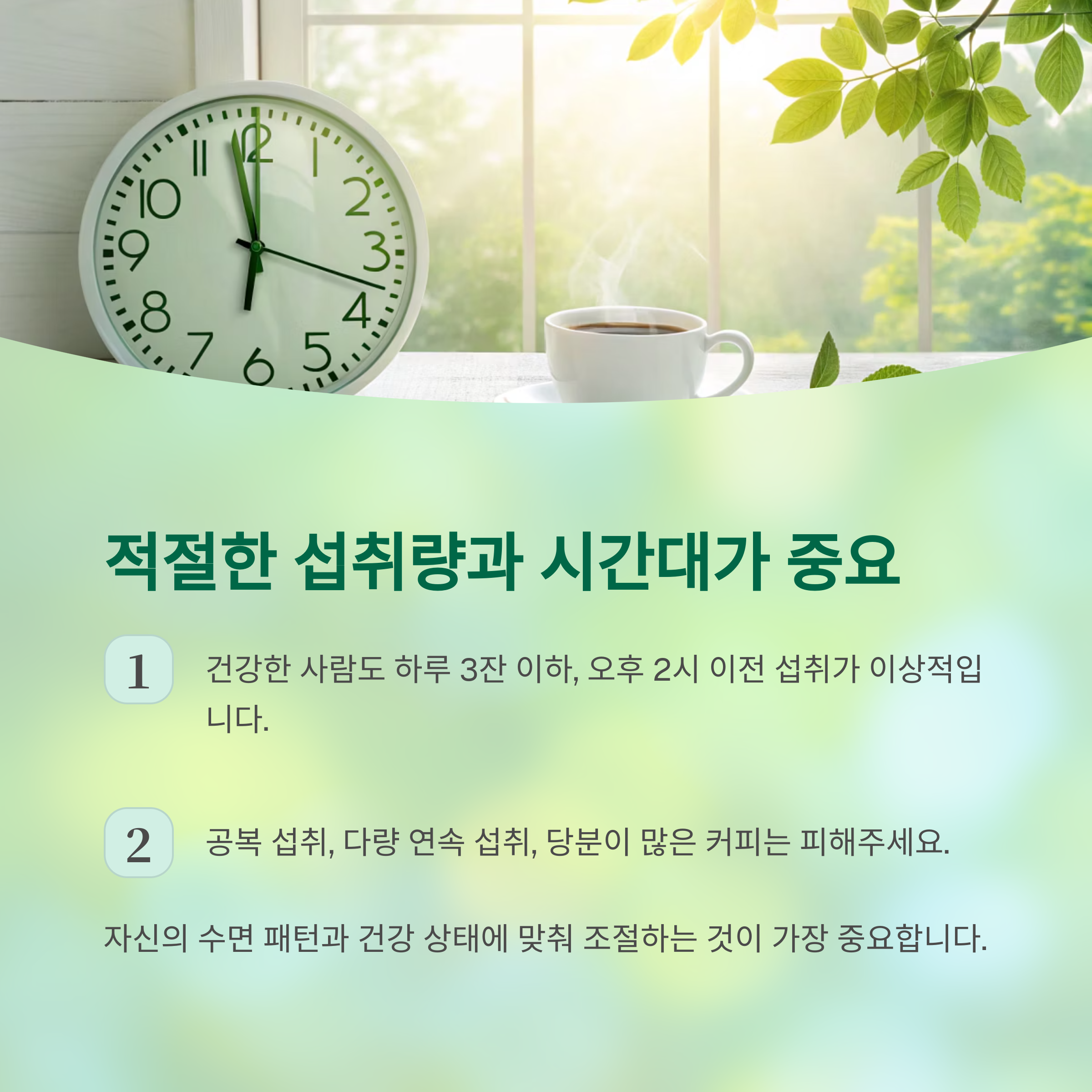 건강한 사람도 하루 3잔 이하, 오후 2시 이전 섭취가