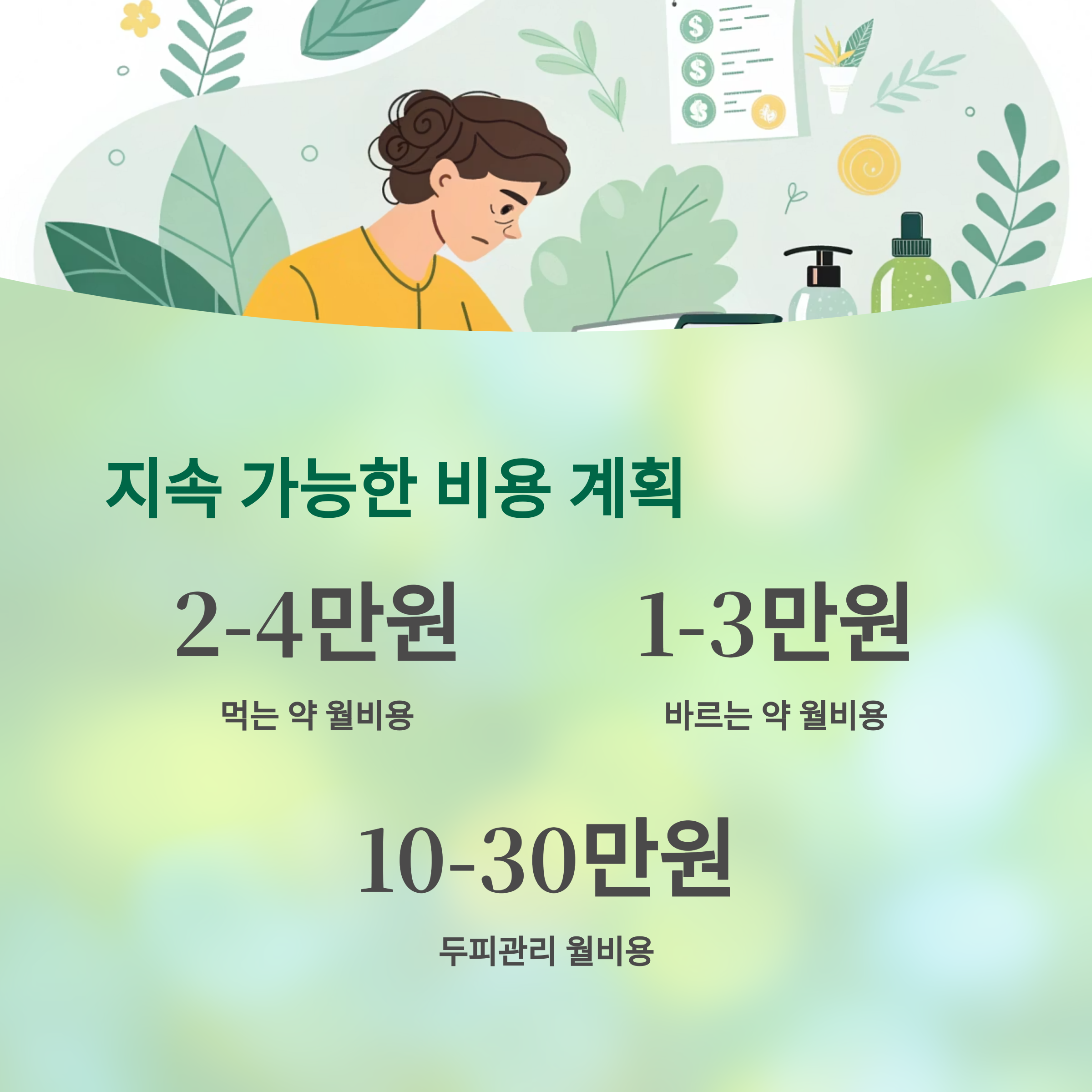 시술비, 약값, 제품 구매 등 생각보다 지출이 큽니다.