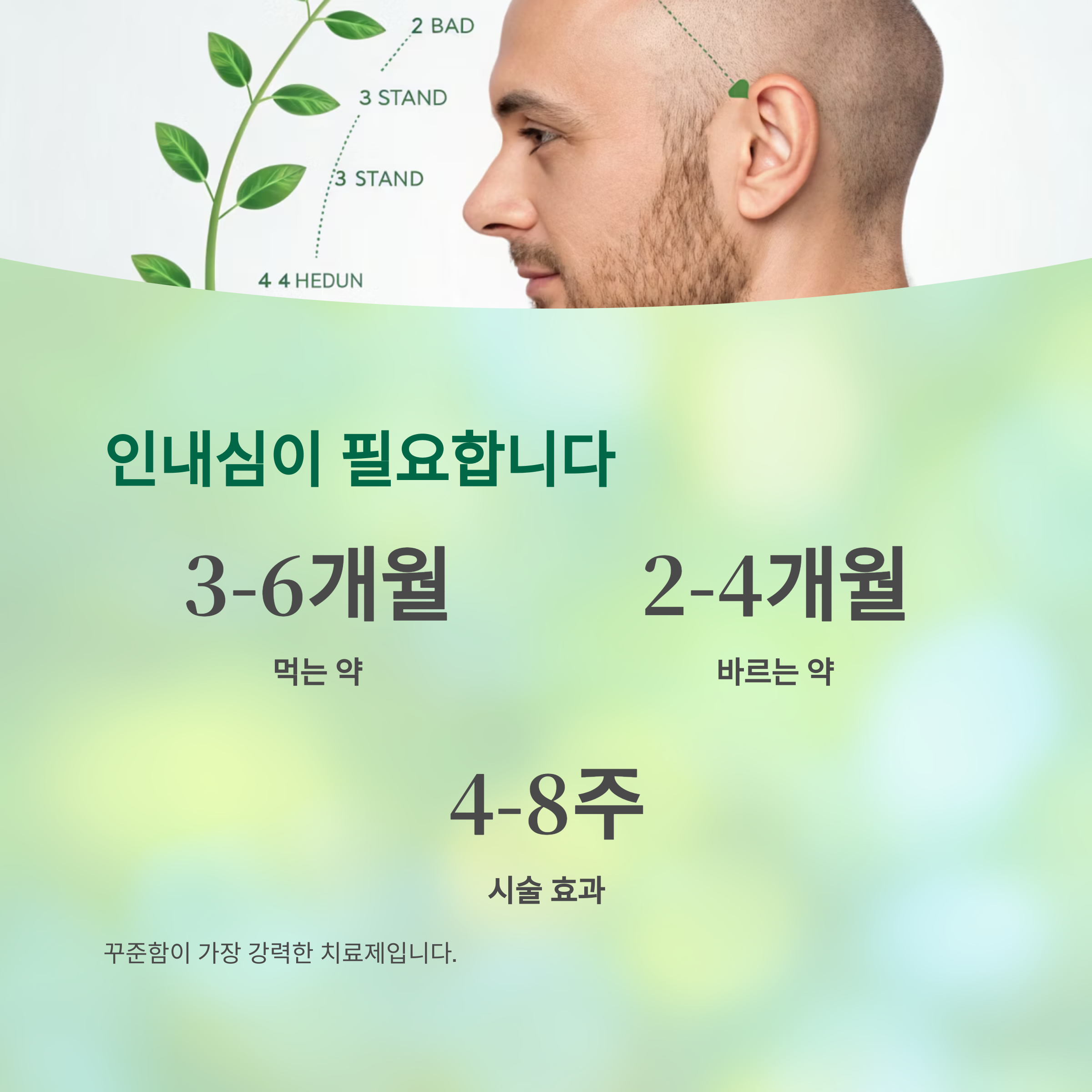 탈모 치료는 단기간에 효과를 보기 어렵습니다.