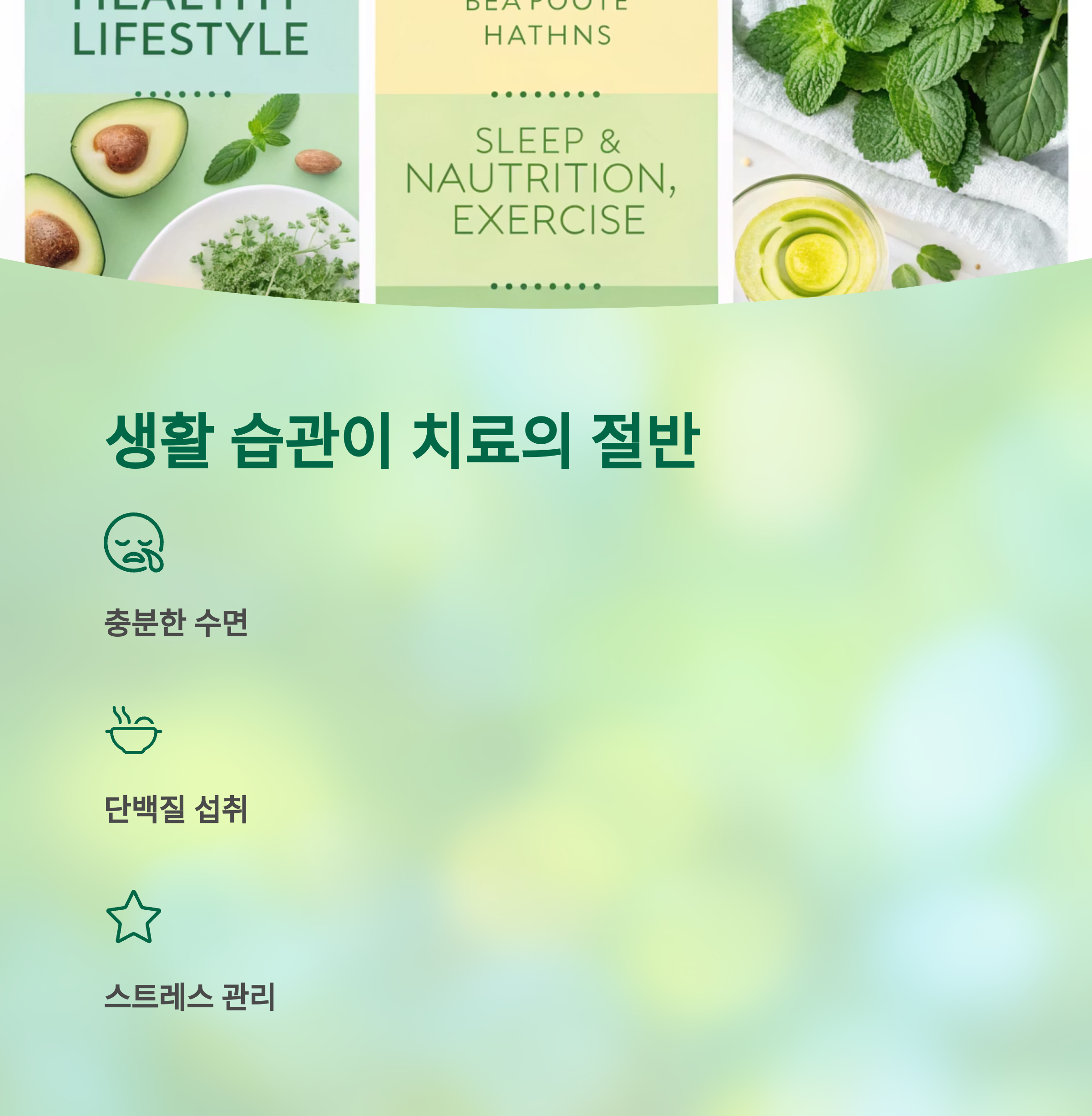 건강한 식단과 운동, 충분한 수면, 스트레스 관리가 치료 효과를 배가시킵니다.