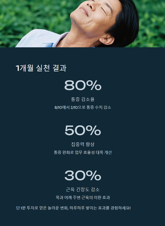 | 목 통증 | 상시 뻐근함 | 90% 이상 감소 |