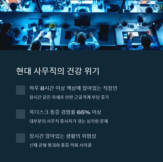 요즘 누구나 목 한 번쯤은 뻐근하다고 느껴봤을 거예요. 특히 직장인이라면 더더욱. 하루에 책상 앞에서 몇 시간을 보내시나요? 저 같은 경우는 점심시간 제외하고 최소 9시간 이상은 컴퓨터 앞에 앉아 있더라고요. 게다가 스마트폰까지 더하면... 목은 늘 앞으로 쏠리고, 어깨는 굽고, 턱은 튀어나오고. 이런 자세가 반복되면 목뼈 사이 디스크가 눌리기 시작하죠. 그렇게 조용히, 하지만 무섭게 진행되는 게 바로 목디스크입니다.