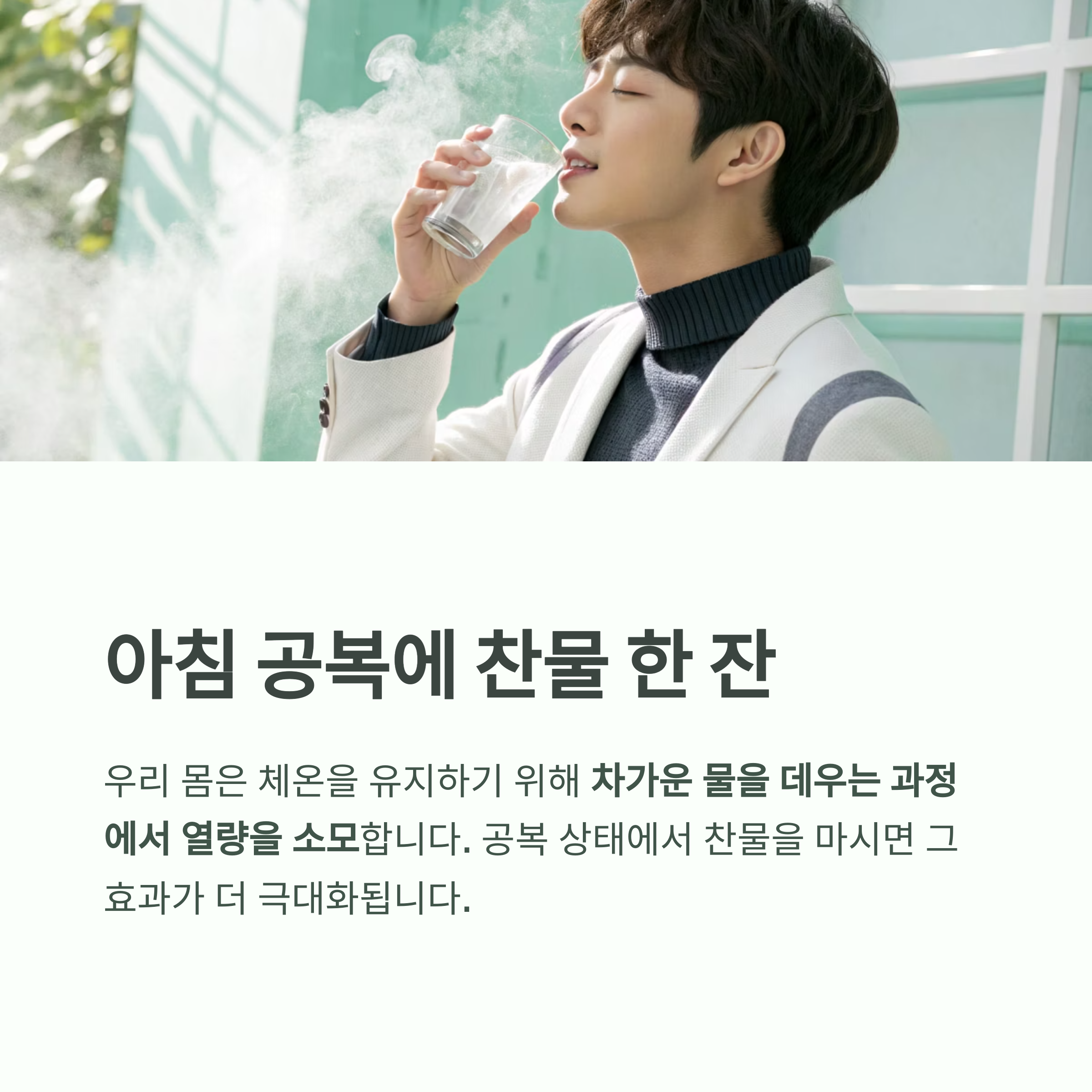 공복 상태에서 찬물을 마시면 그 효과가 더 극대화됩니다.