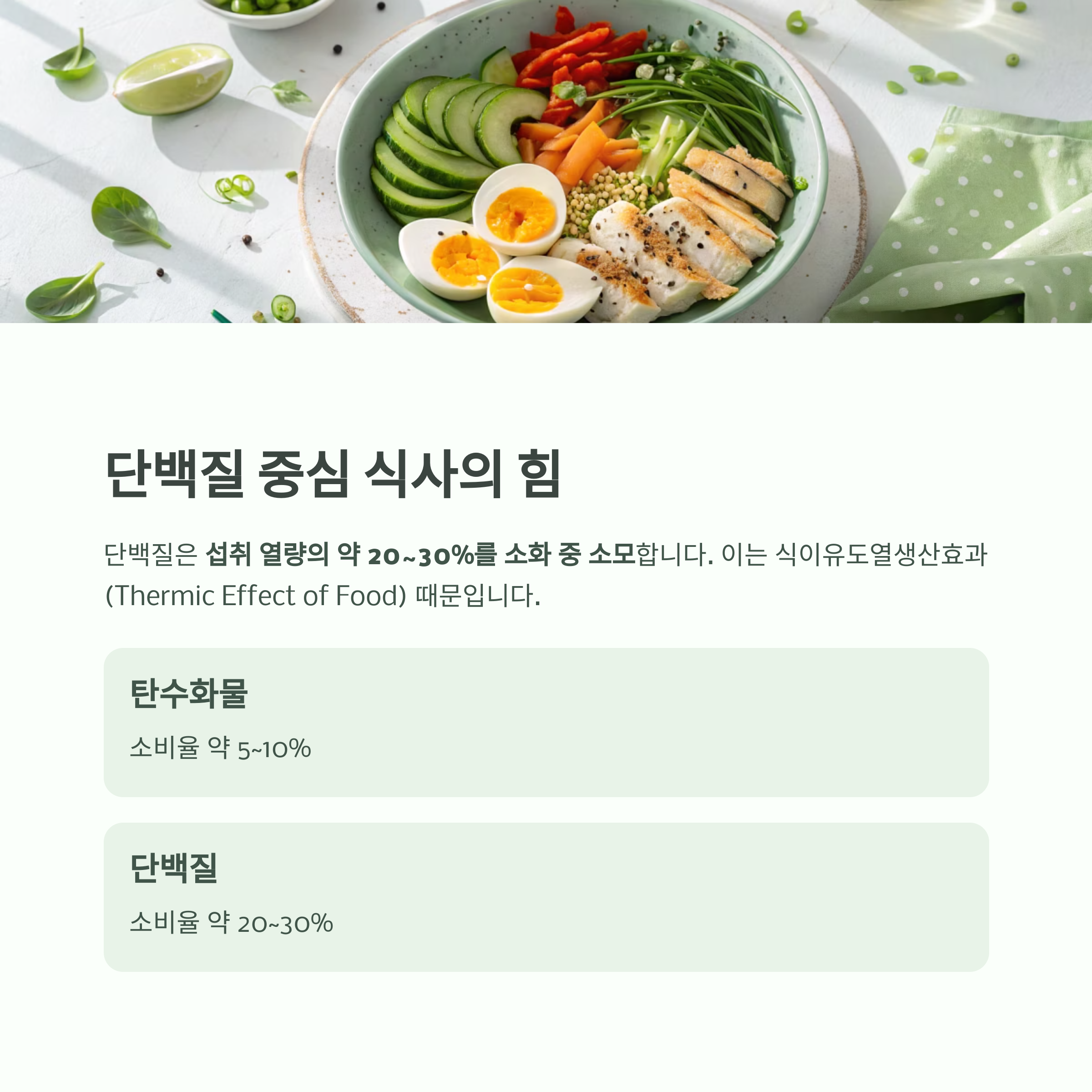 단백질은 소화와 대사 과정에서 더 많은 열량을 사용합니다.